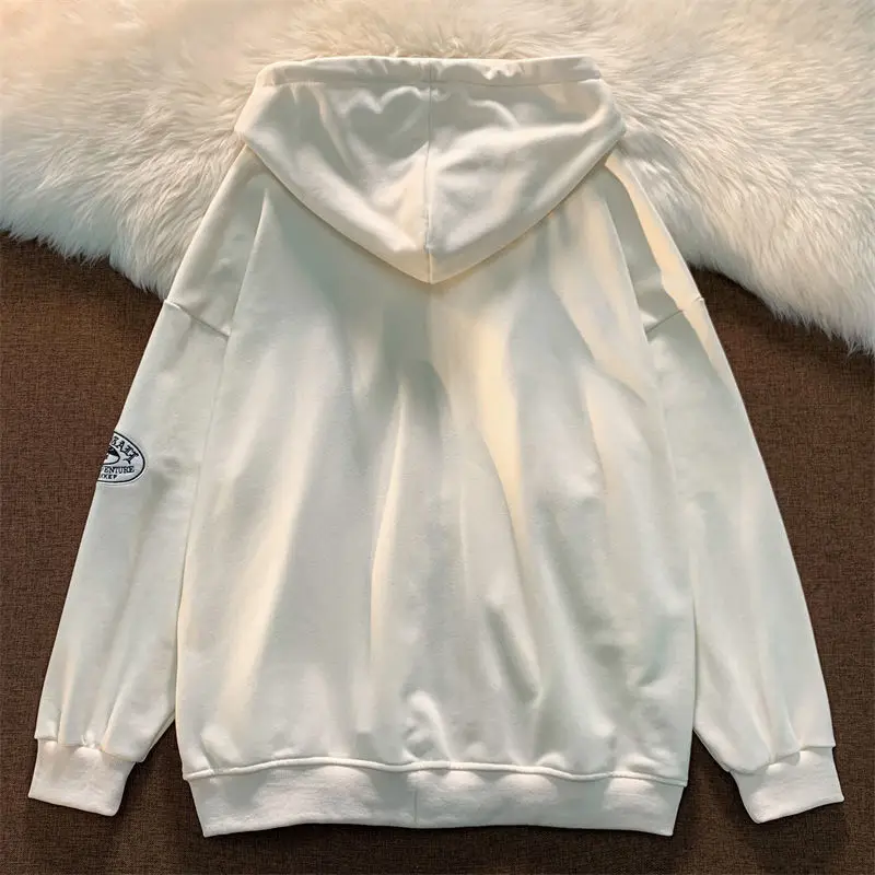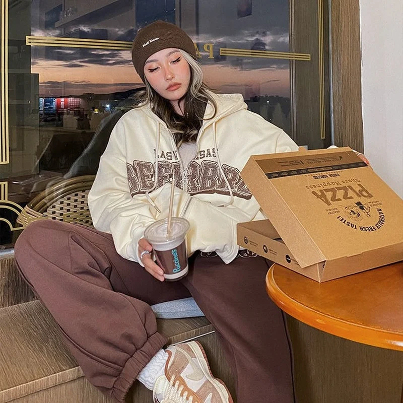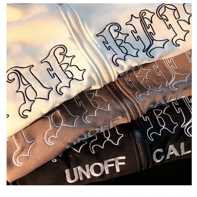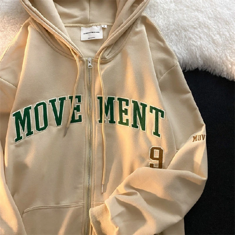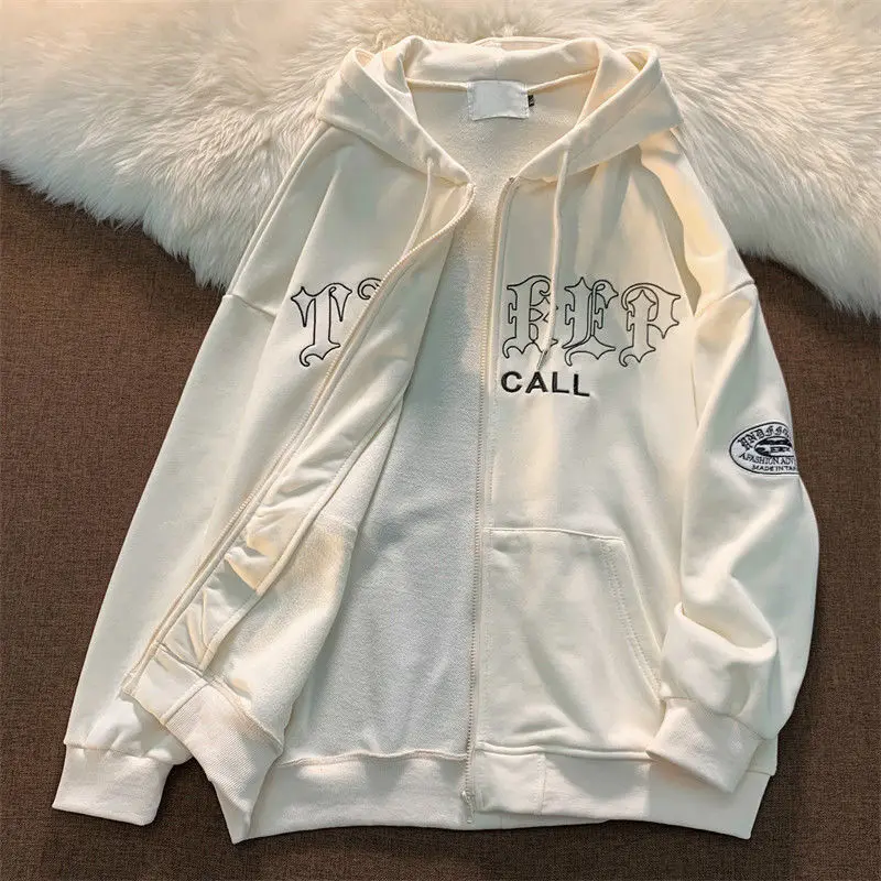 Letter Embroidery Vintage Loose Zipper Hoodies