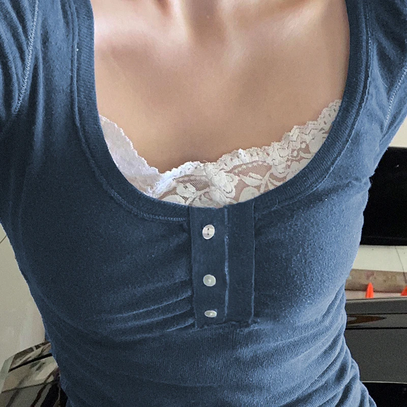 White Lace Trim T-shirt