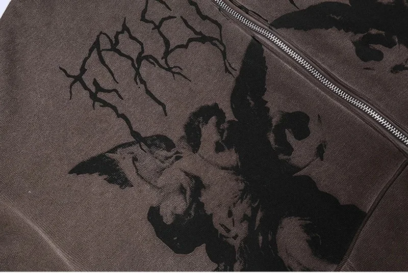Angel Dark Print Streetwear Hoody Jacket