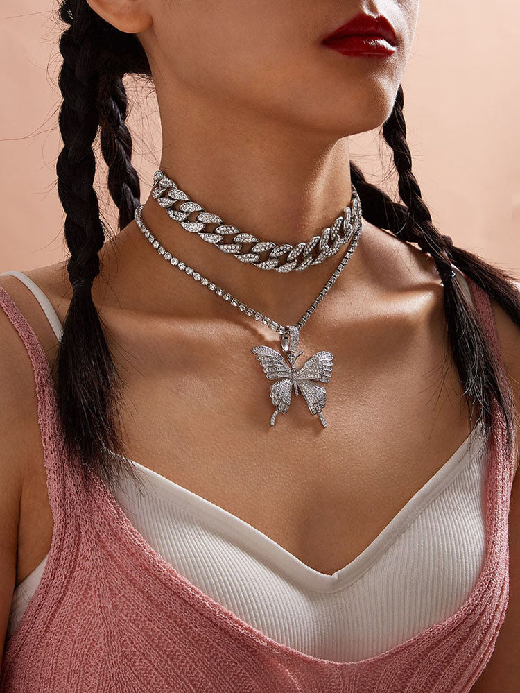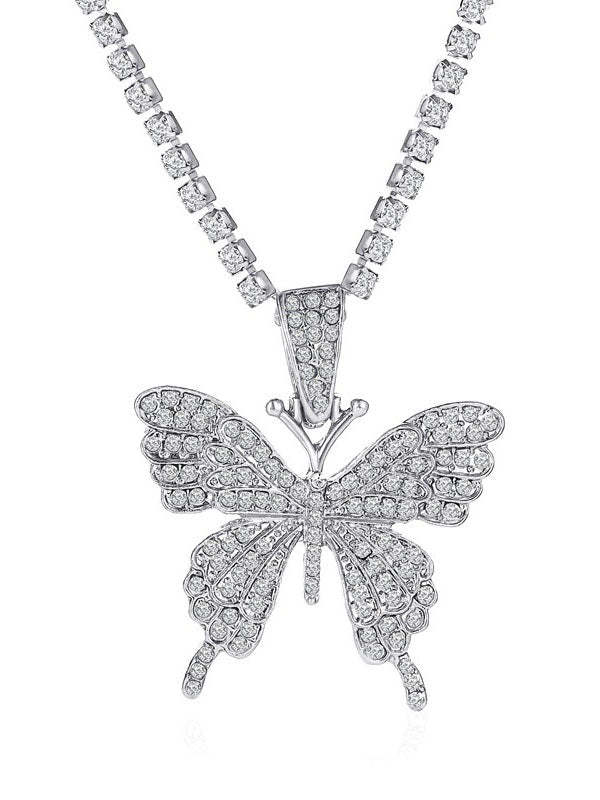 Rhinestone Butterfly Halter Trendy Asymmetric Crop Cami Top