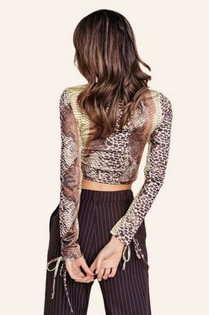 Printed Slim Fit Long Sleeve Crop Top