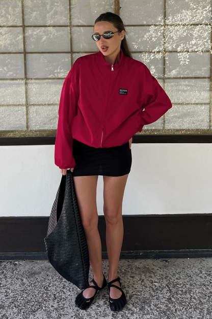 • Fit: Loose Fit • Length: Regular Length • Neckline: Stand Collar • Sleeve Type: Regular Sleeve • Sleeve Length: Long Sleeve • Composition: Polyester • Details: Zipper