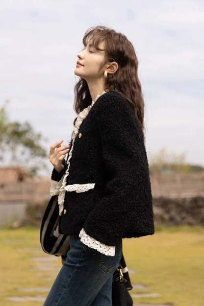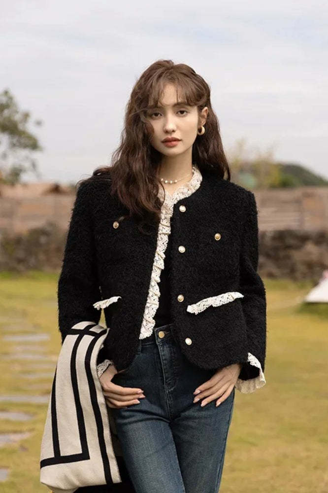 Retro Lace Splicing Wool Jacket