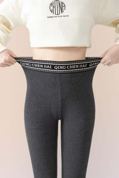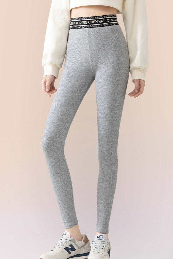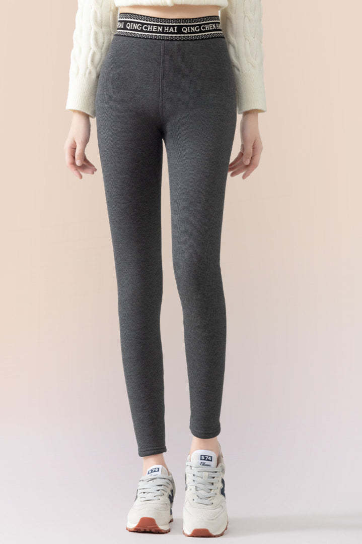 Ribbed Cotton Fleece Lined Slim Fit Ankle Length Leggings
