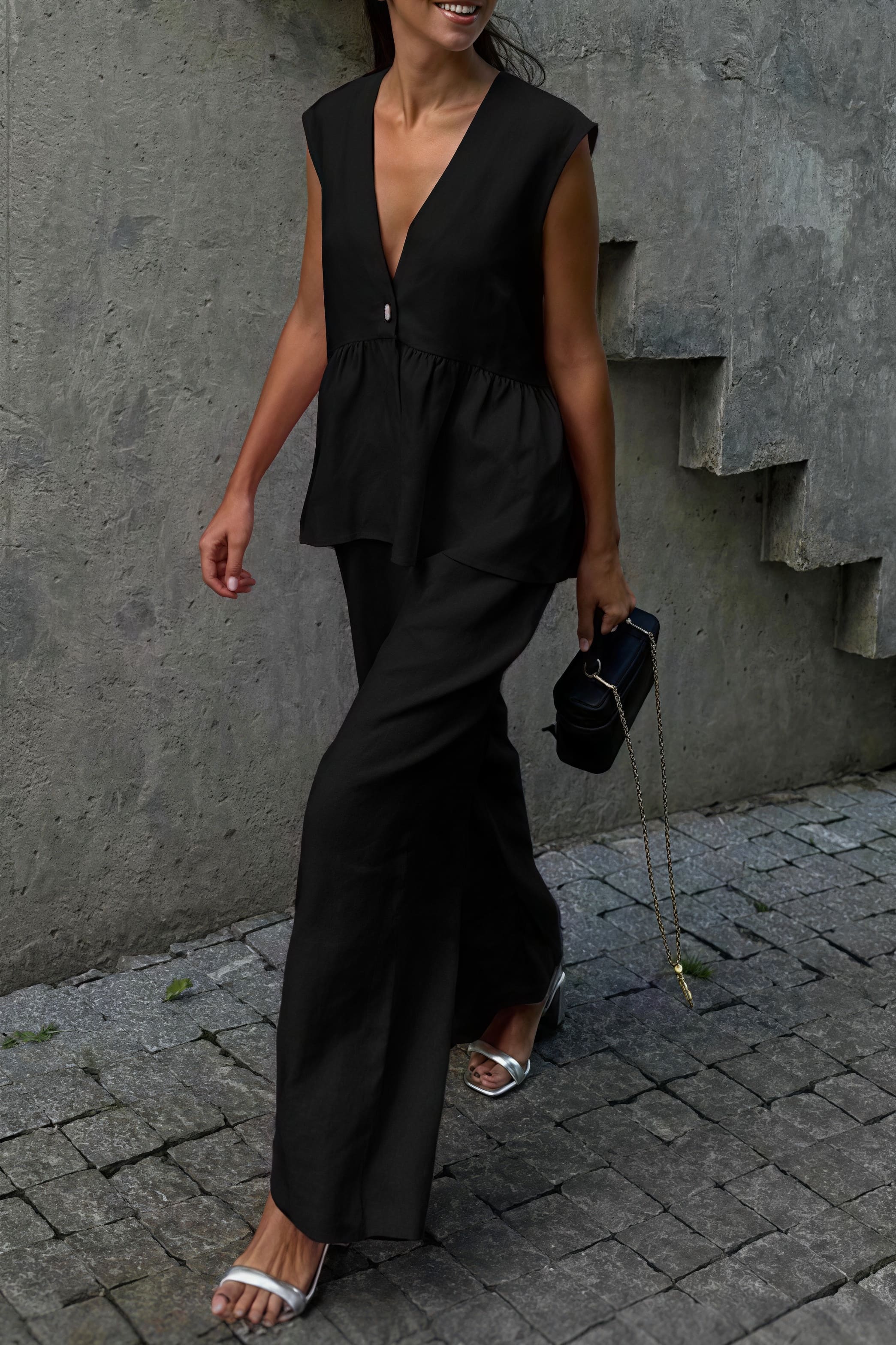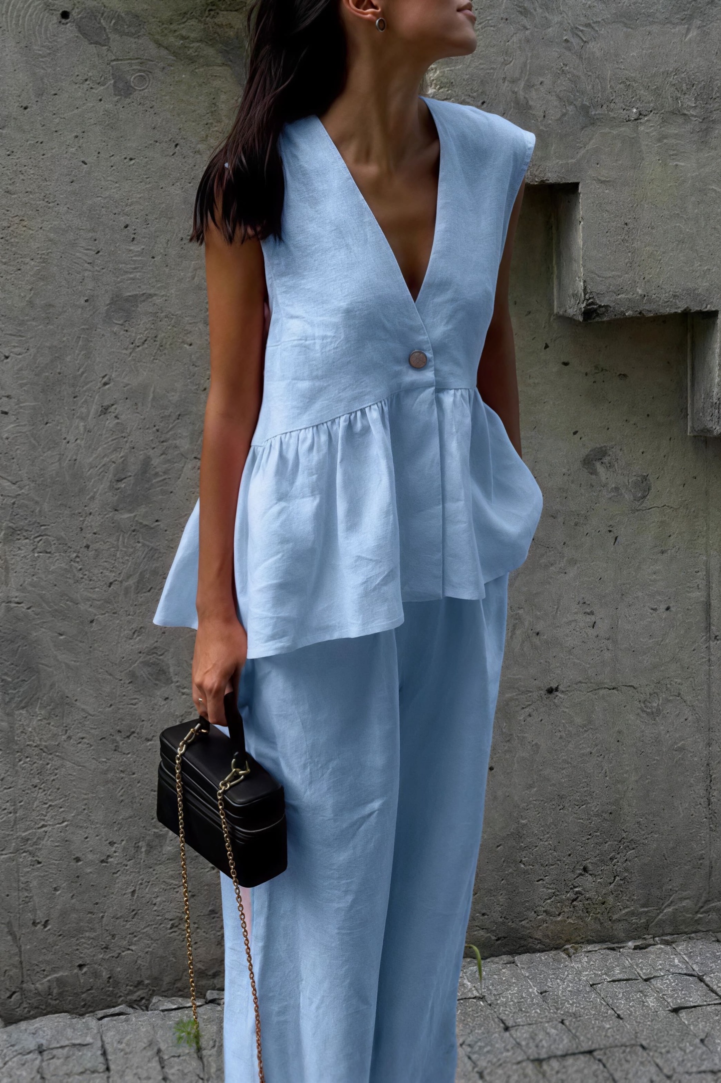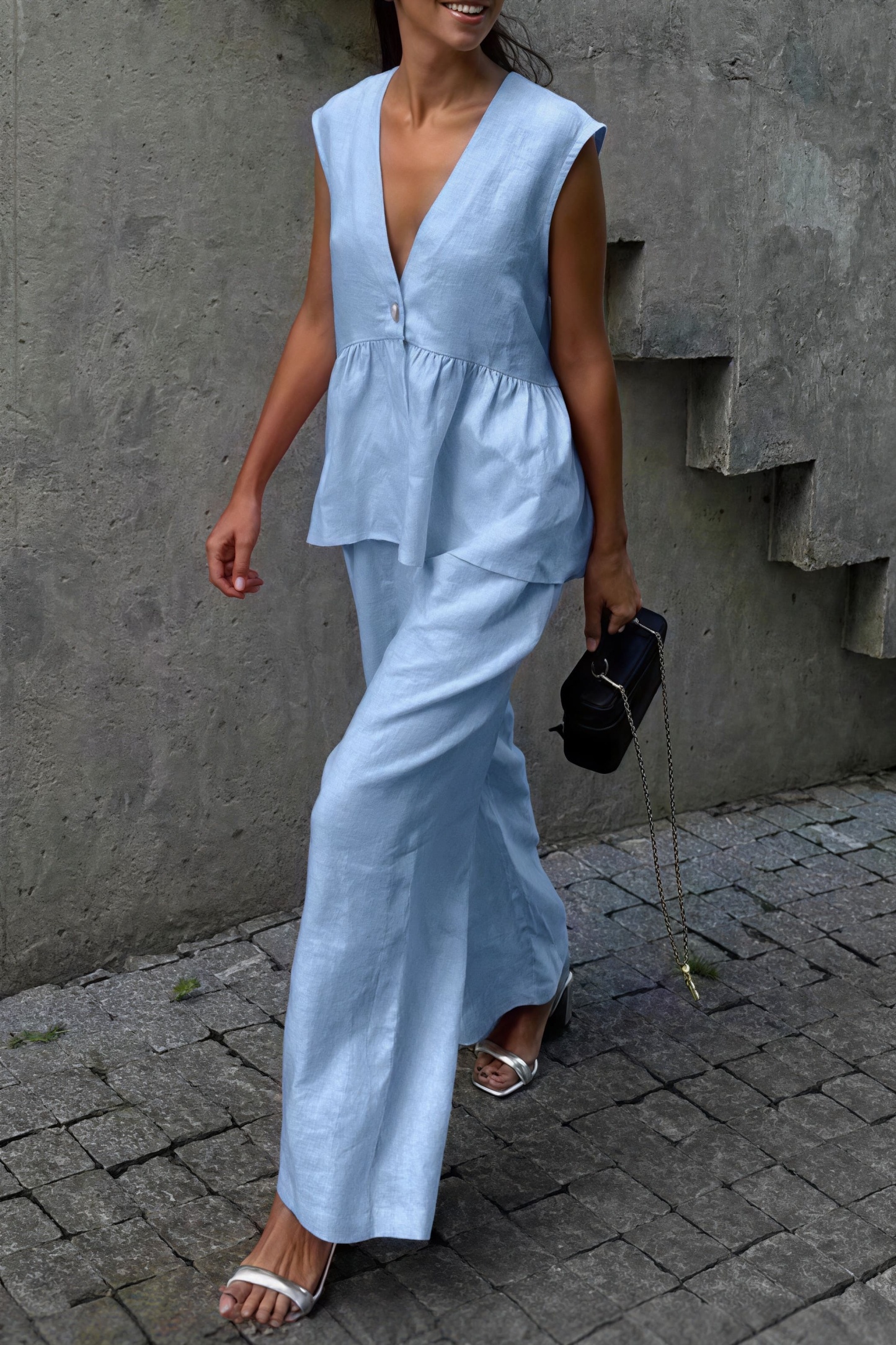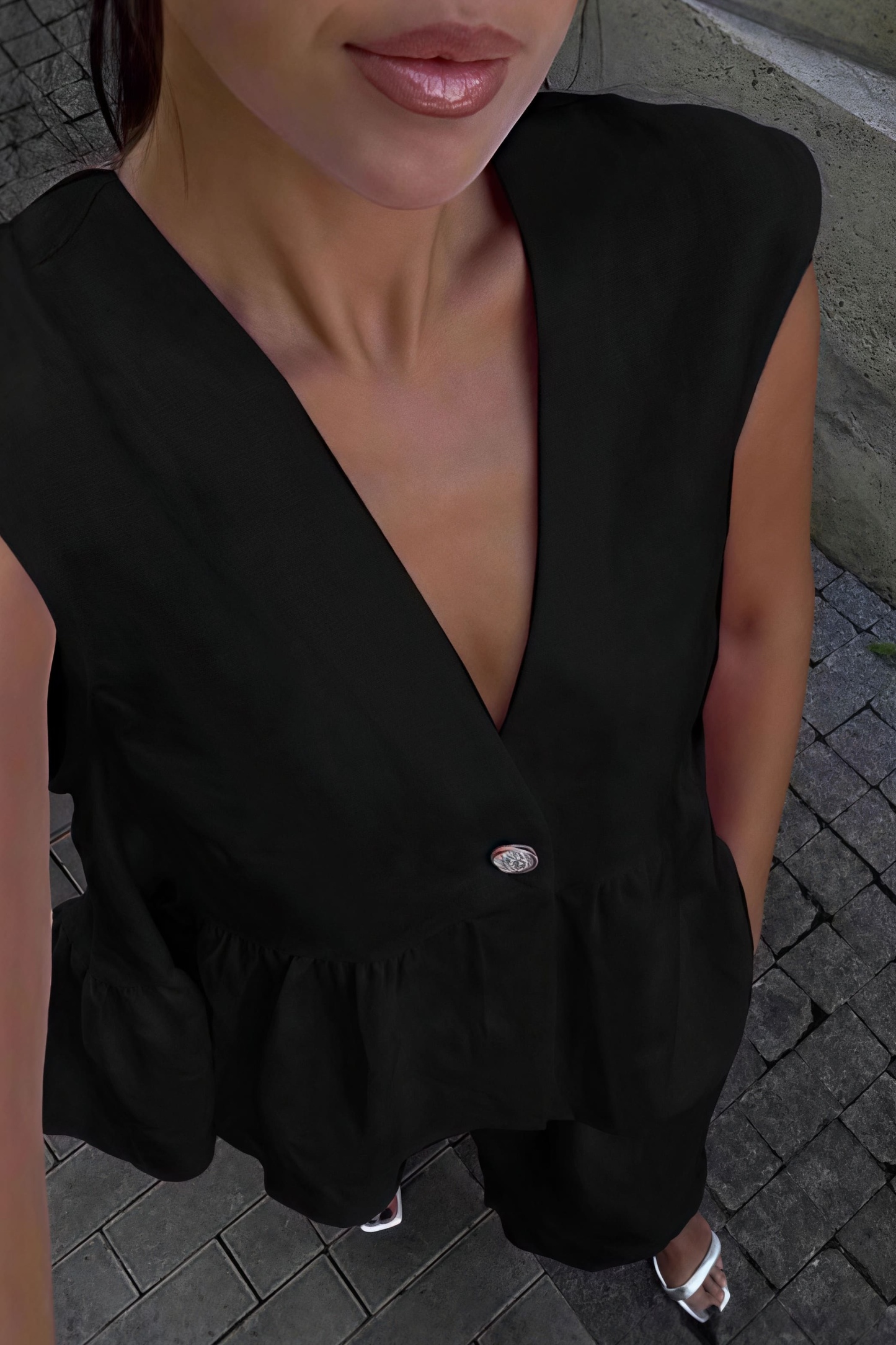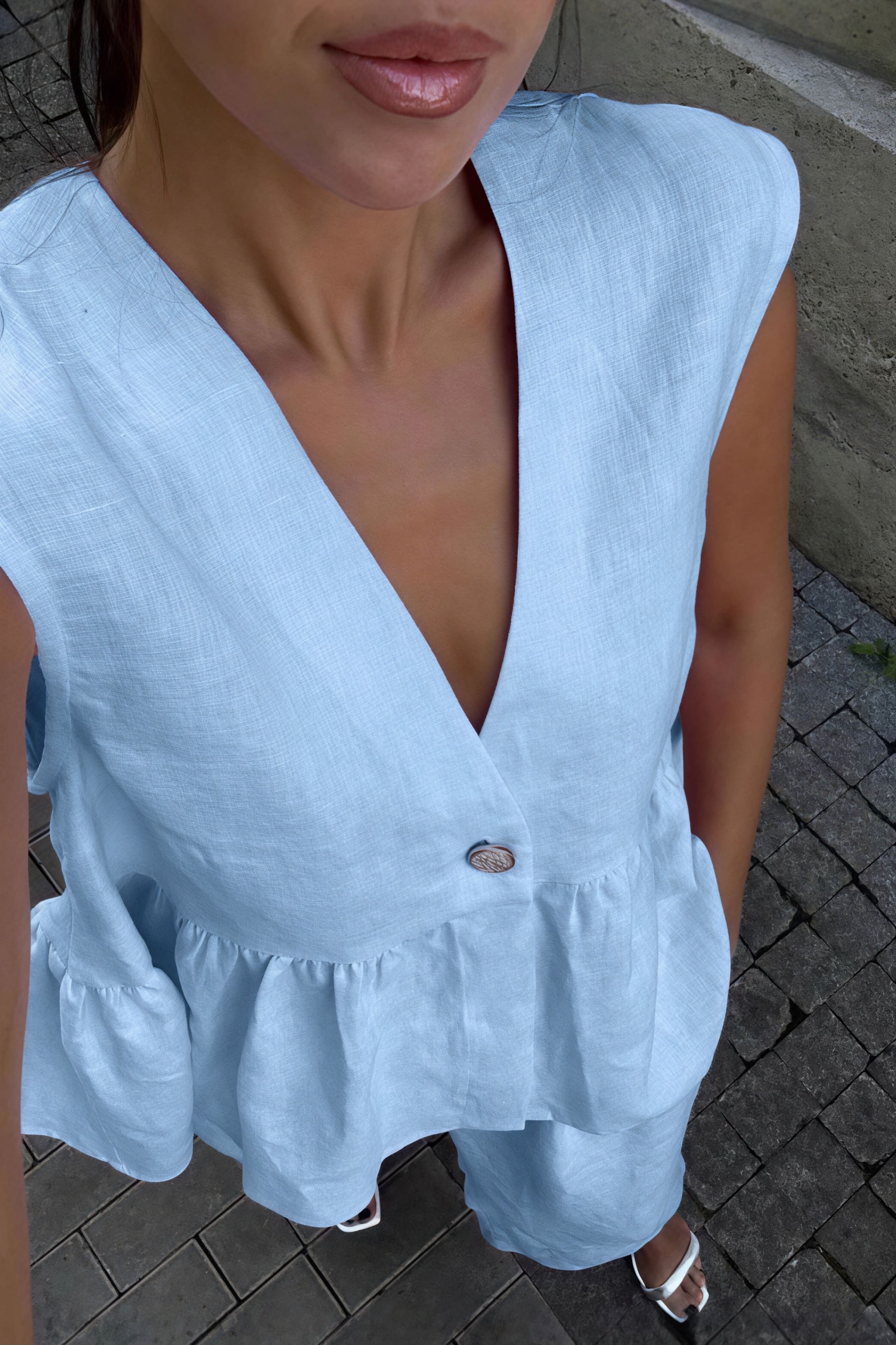 • Sleeve Type: Sleeveless • Sleeve Length: Sleeveless • Details: Solid Color, Ruffles • Composition: Cotton