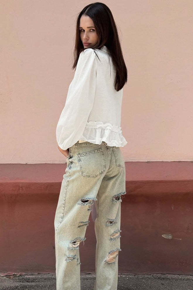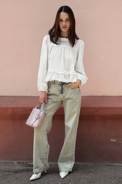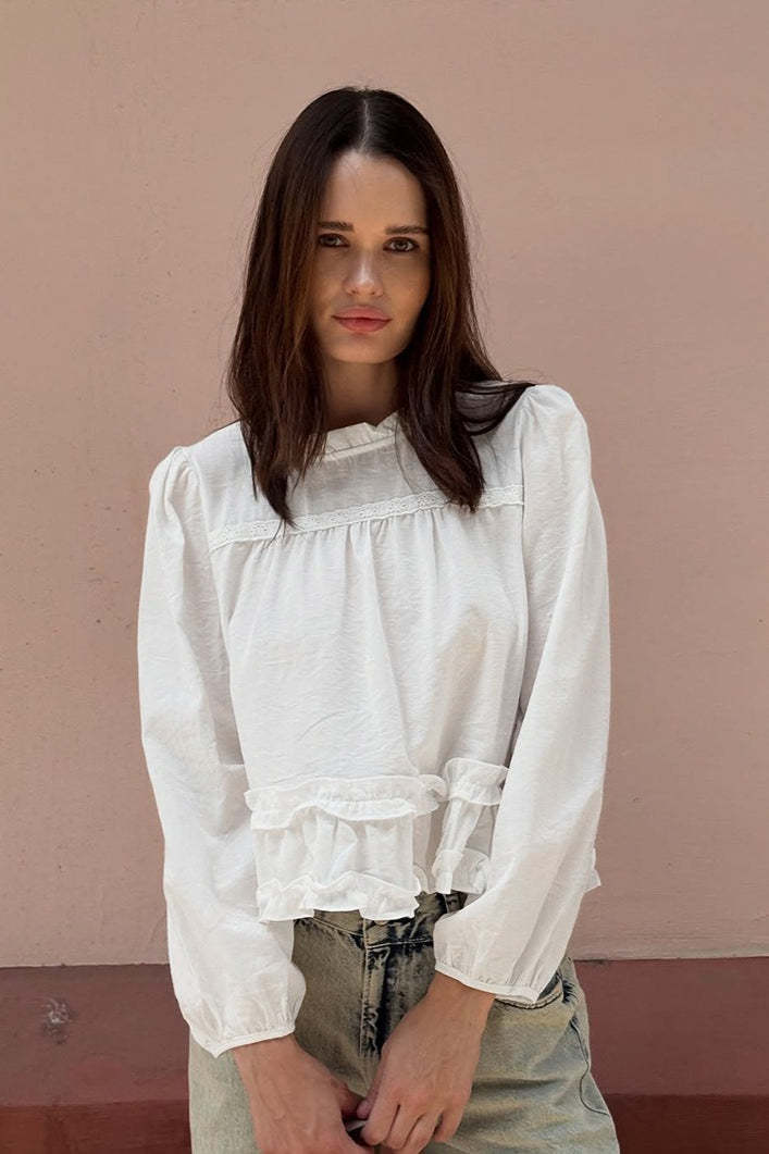 • Fit: Regular Fit • Neckline: Round Neck • Sleeve Length: Long Sleeve • Sleeve Type: Puff sleeve • Details: Ruffles • Composition: Cotton