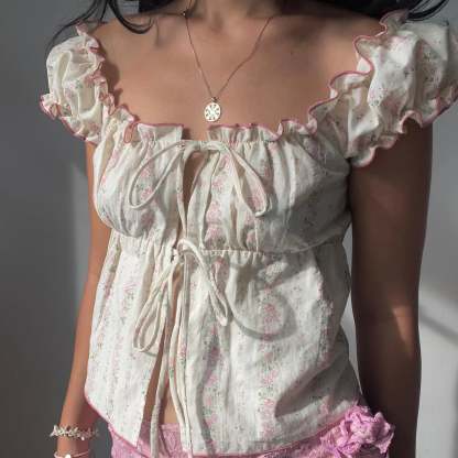 Hign-concerned Chemical : None Style: Slim Fit Craft of Weaving : Non-woven Pattern Them : Fairy tale Season : Summer Sleeve Style : Regular Collar : Square Collar Pattern Type : Floral Clothing Length : Regular Sleeve Length(cm) : Short(4-16inch) Fabric Type : Broadcloth Style : vintage Material : Polyester,Spandex Gender : Women Tops Type : Tees Item Type : Tops Elasticity : Non Strech