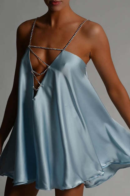 • Dress Length: Mini • Neckline: V-Neck • Sleeve Length: Sleeveless • Sleeve Type: Sleeveless • Details: 3D Decoration • Composition: Polyester, Satin