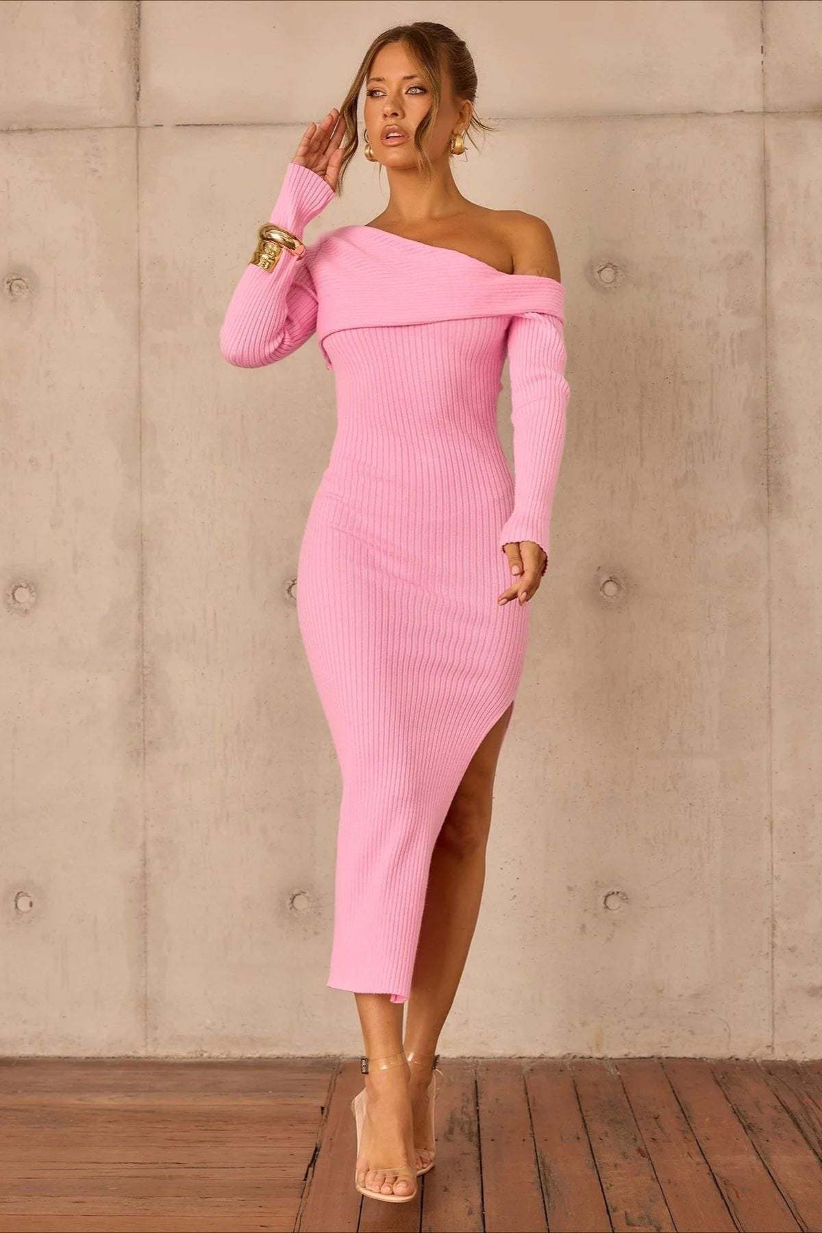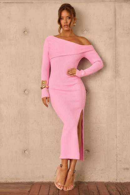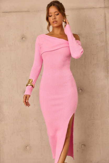 • Clothing Type: Bodycon Dress • Dress Length: Midi • Waist Type: Mid Waist • Neckline: Asymmetrical Neck • Sleeve Type: Regular Sleeve • Sleeve Length: Long Sleeve • Composition: Polyester • Details: Solid Color
