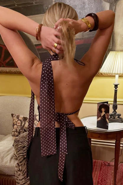 Sexy Polka Dot Deep V Tie Cami Top
