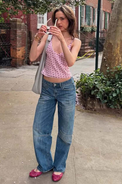 Sexy Polka Dot V-Neck Cami Crop Top