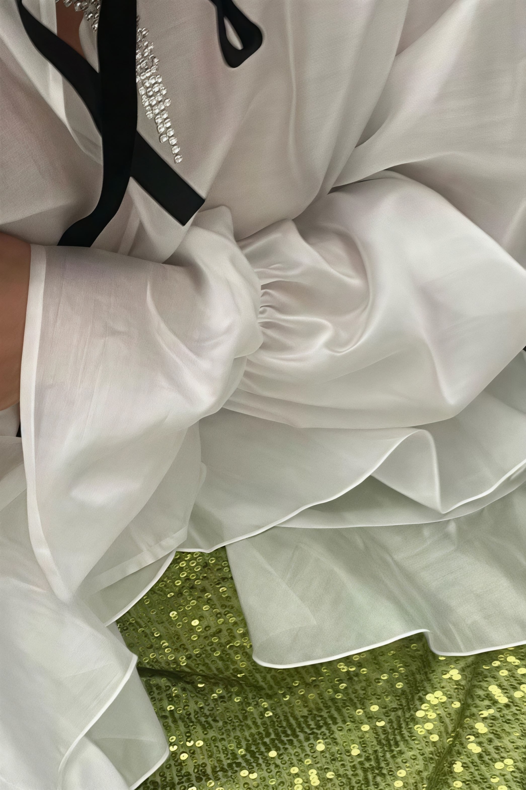 • Fit: Loose Fit • Neckline: Mock Neck • Sleeve Type: Flare sleeve / Trumpet sleeve • Sleeve Length: Long Sleeve • Details: Sheer • Composition: Tencel, Polyester