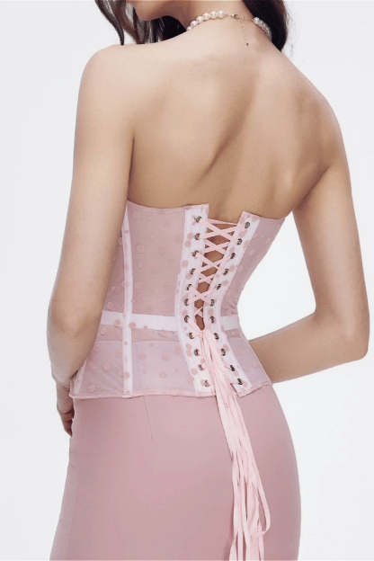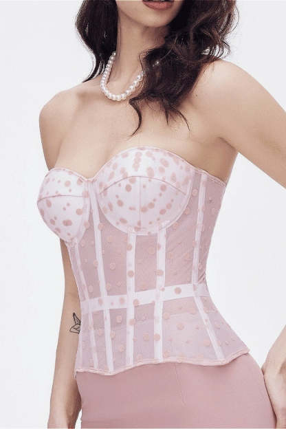 • Length: Regular • Composition: Polyester, Spandex • Elasticity: Non-Stretch • Strap Style: Strapless • Pattern: Polka Dot