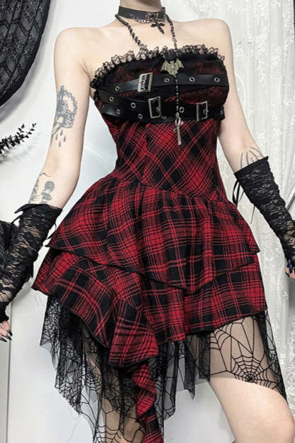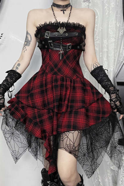 Slim Check Bodycon Gothic Dress