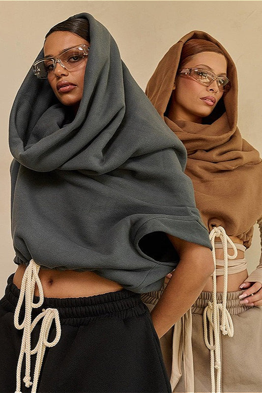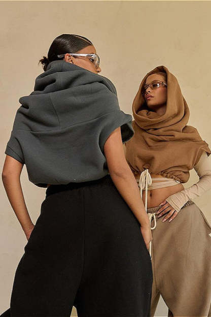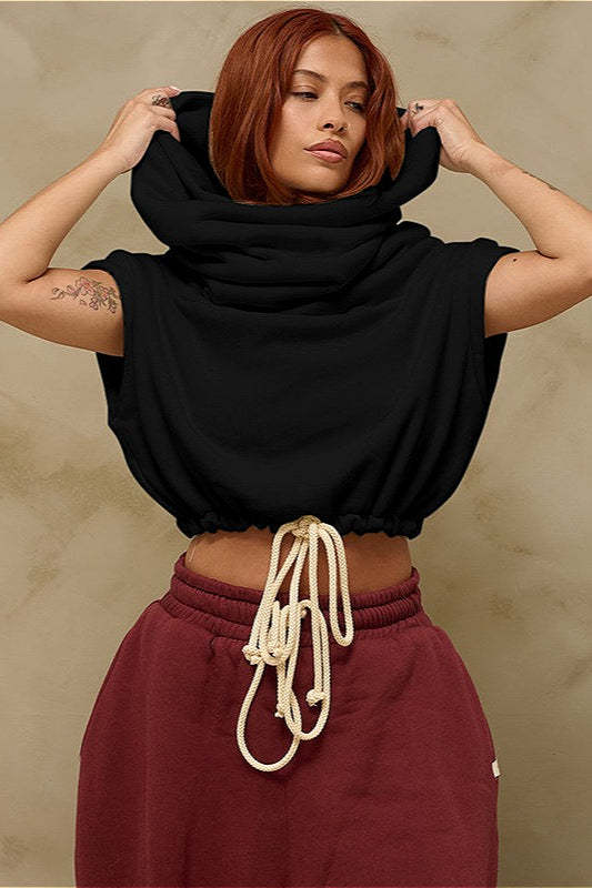 • Fit: Loose Fit • Neckline: Hooded • Sleeve Type: Sleeveless • Sleeve Length: Sleeveless • Details: Solid Color, Drawstring • Composition: Polyester
