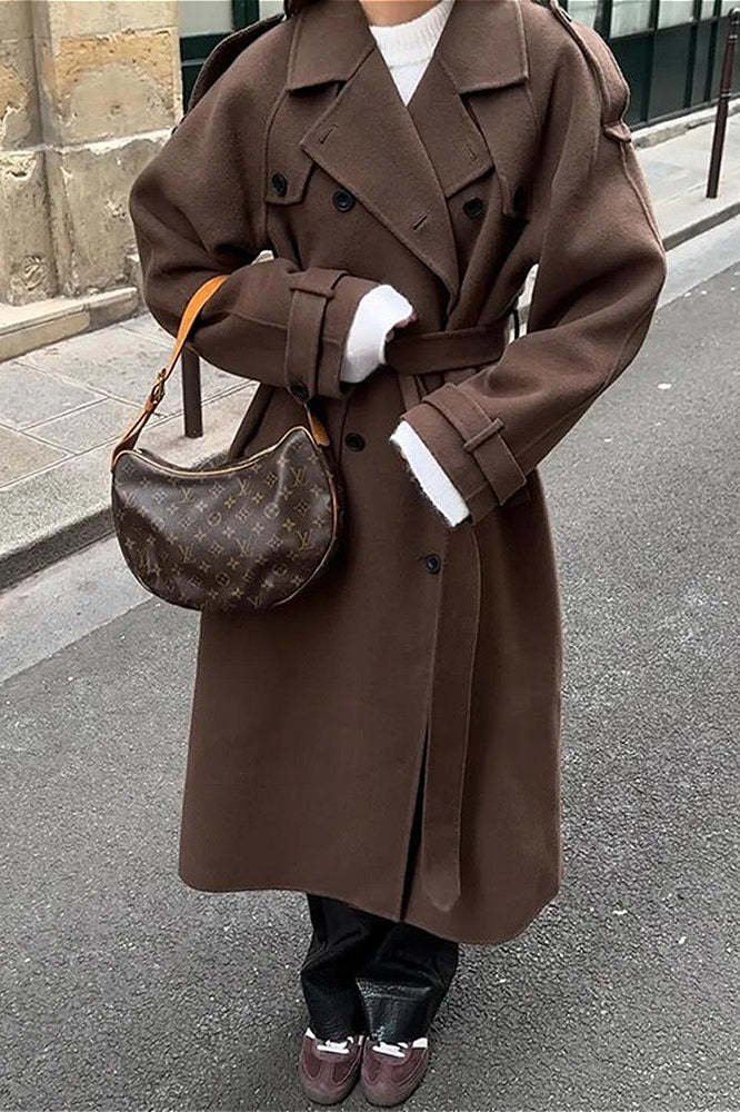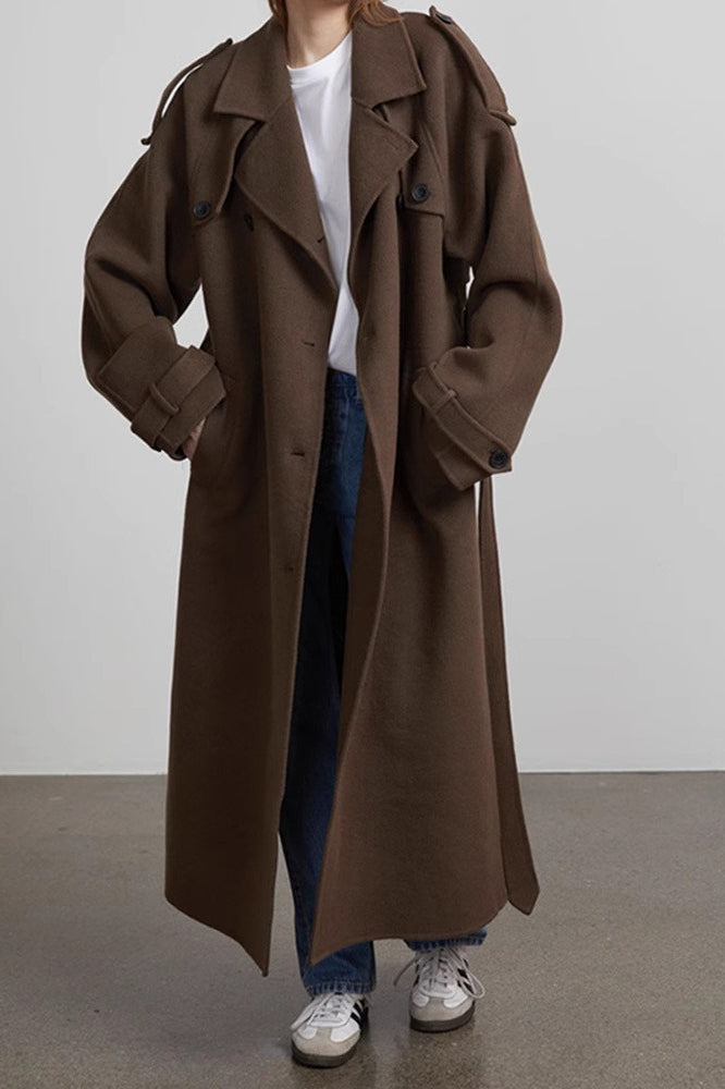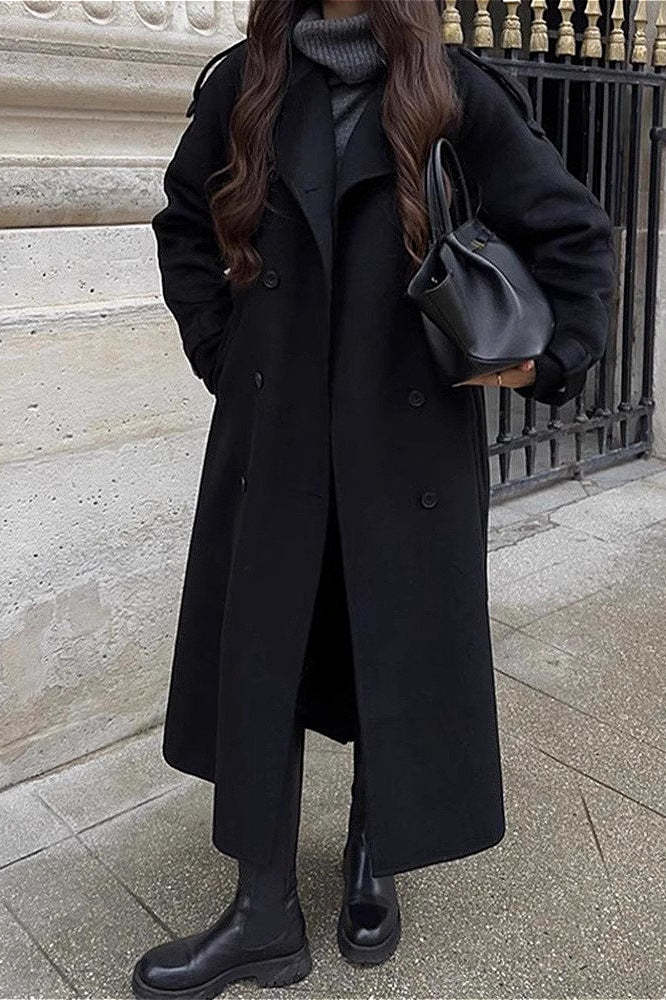 Solid Color Longline Elegant Long Sleeve Overcoat