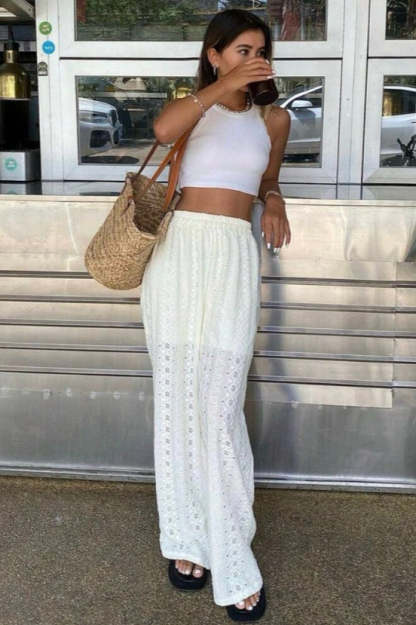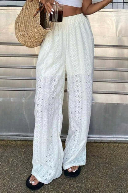 • Clothing Type: Straight Pants • Waist Type: High Waist • Details: Lace • Composition: Polyester • Elasticity: Medium Stretch