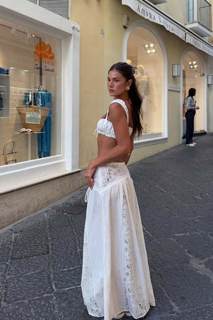 • Composition: Polyester • Sleeve Length: Sleeveless • Details: Lace • Skirt Length: Midi Skirt