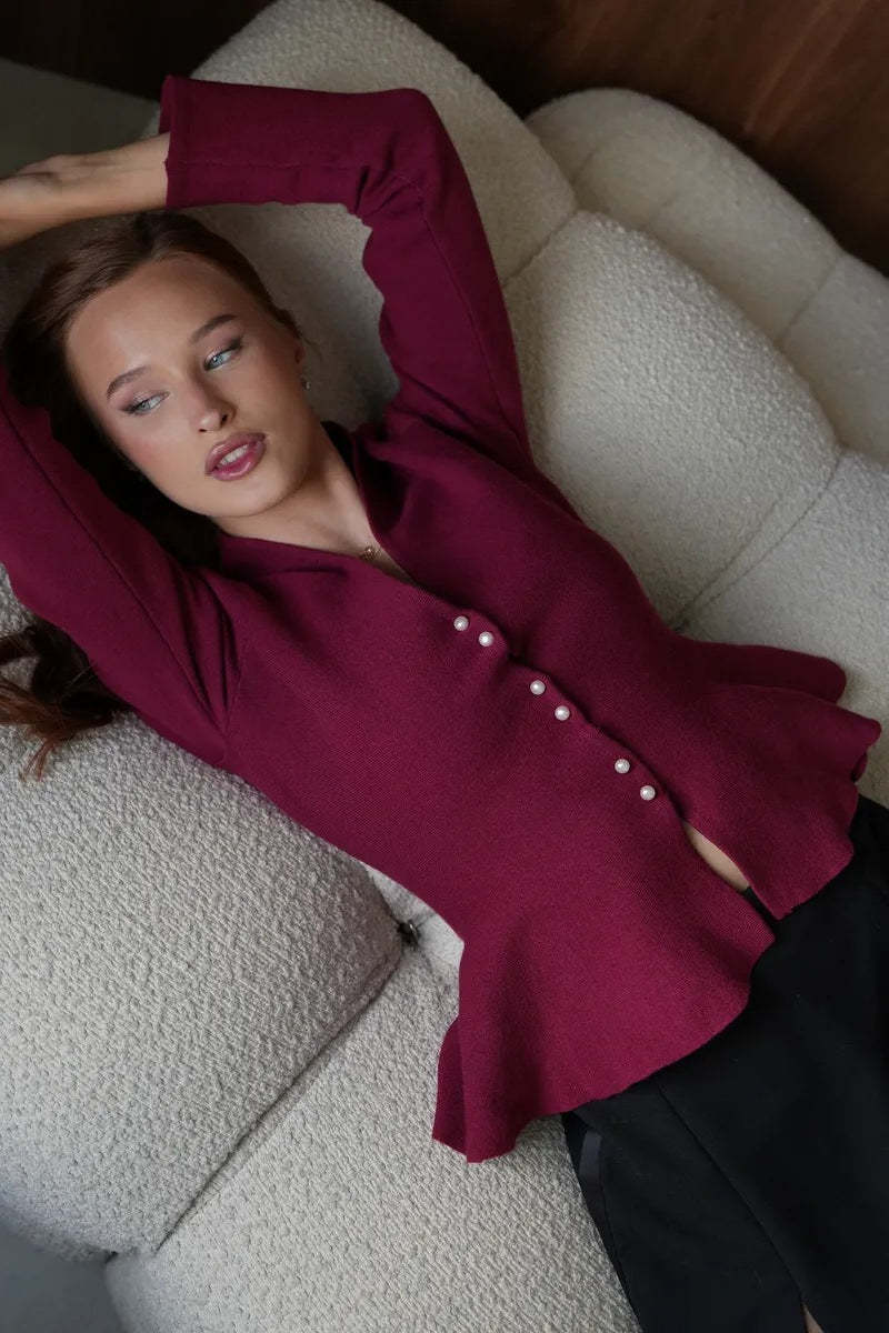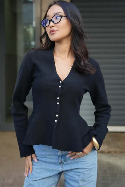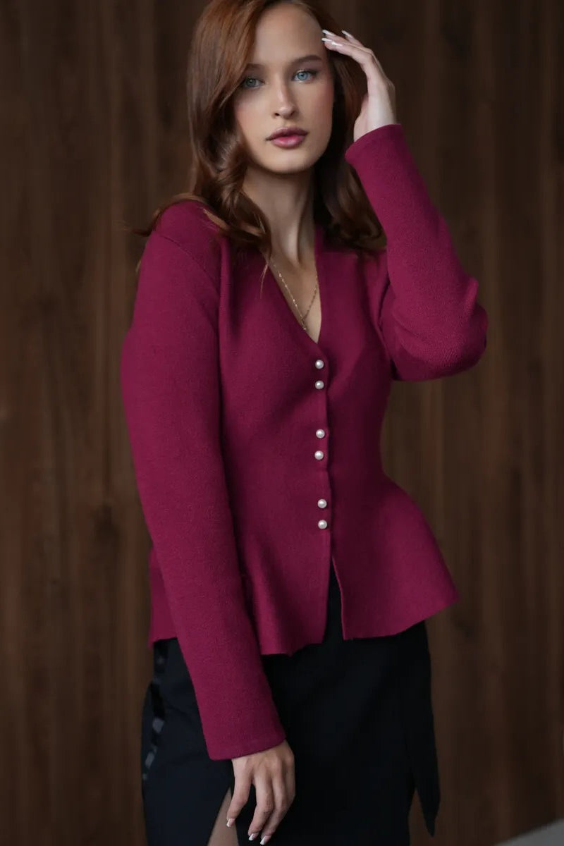 • Fit: Slim Fit • Neckline: V-Neck • Sleeve Type: Regular Sleeve • Sleeve Length: Long Sleeve • Details: Color Block • Composition: Viscose, Rabbit Fur