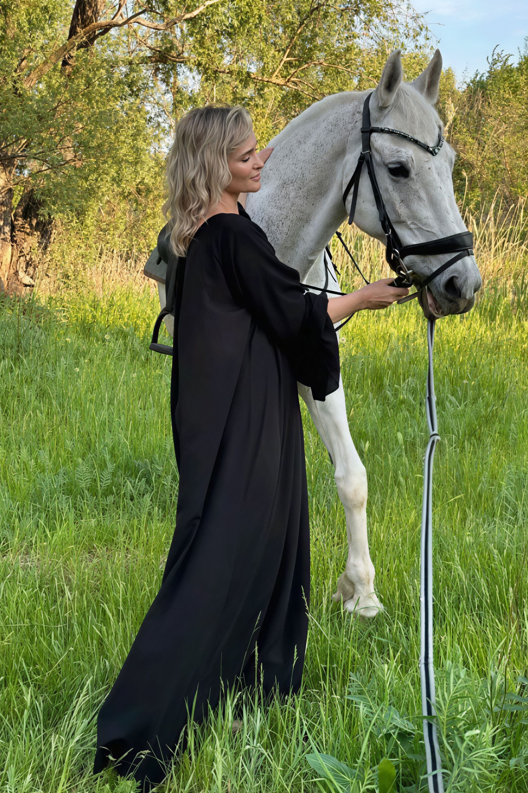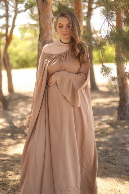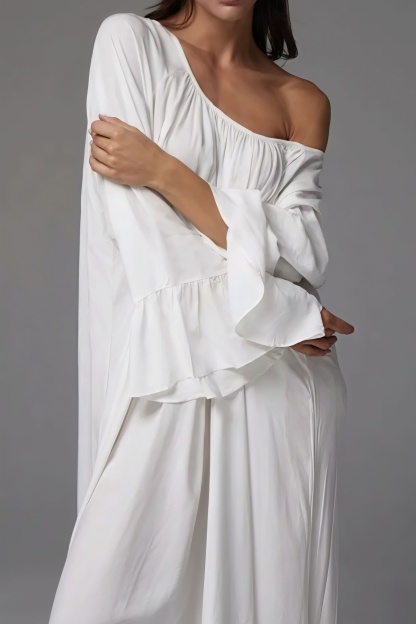 • Clothing Type: Circle Dress • Dress Length: Maxi • Waist Type: Loose Waist • Neckline: Asymmetrical Neck • Sleeve Type: Flare sleeve / Trumpet sleeve • Sleeve Length: Long Sleeve • Composition: Nylon, Polyamide • Details: Patchwork Maxi Dress