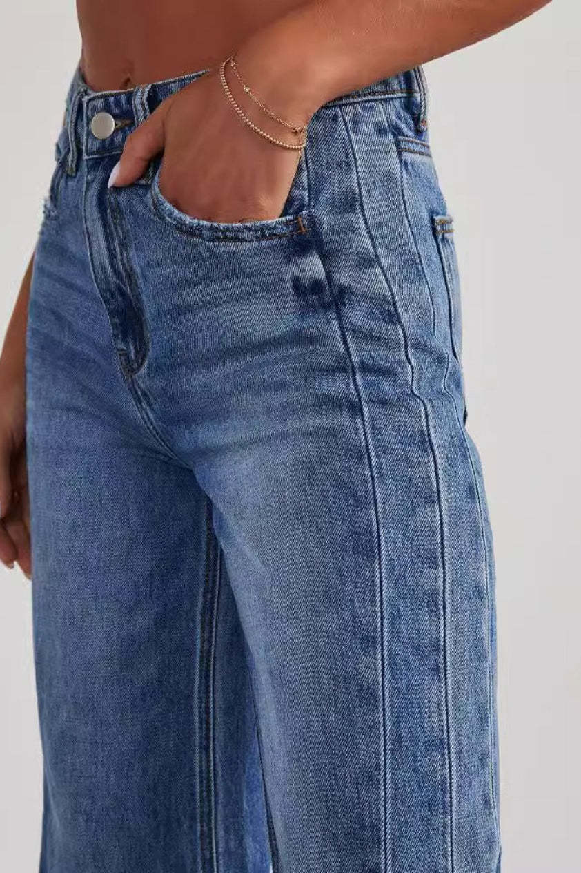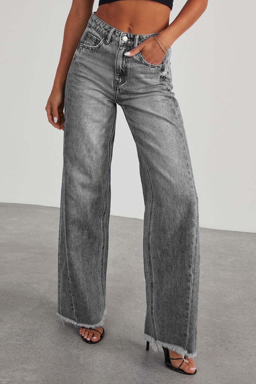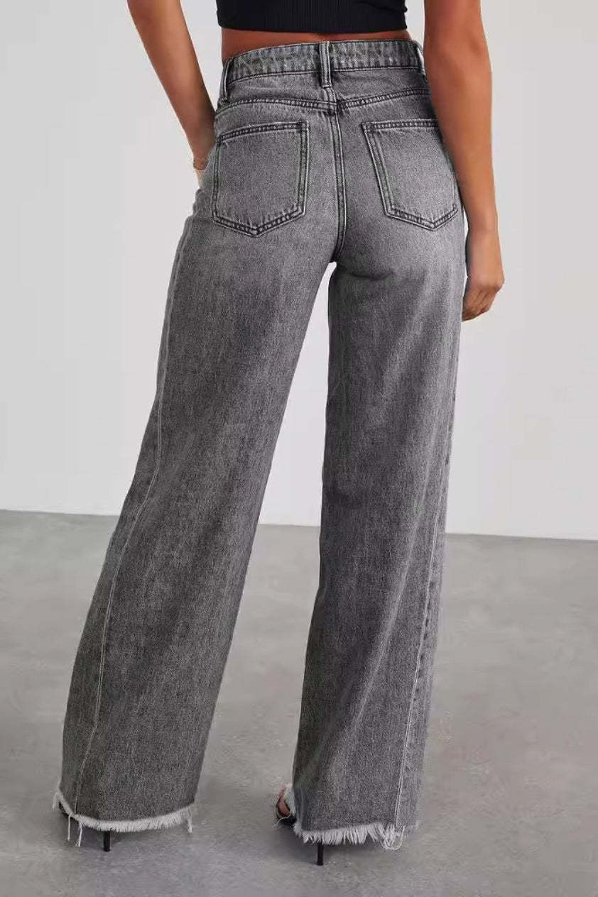 • Clothing Type: Wide Leg Pants • Length: Full Length • Waist Type: High Waist • Details: Washed • Composition: Cotton, Polyester