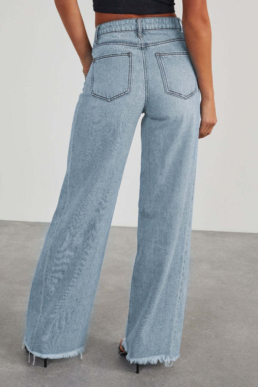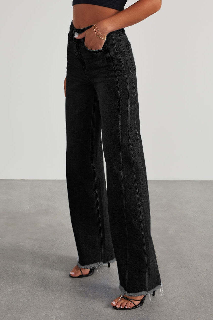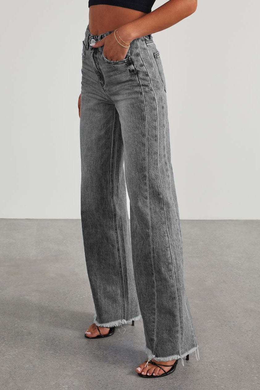 • Clothing Type: Wide Leg Pants • Length: Full Length • Waist Type: High Waist • Details: Washed • Composition: Cotton, Polyester