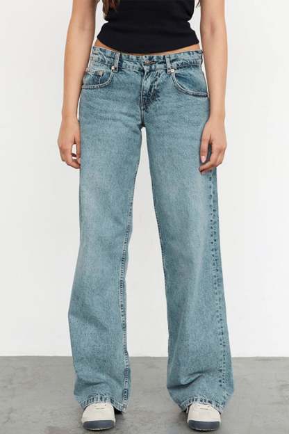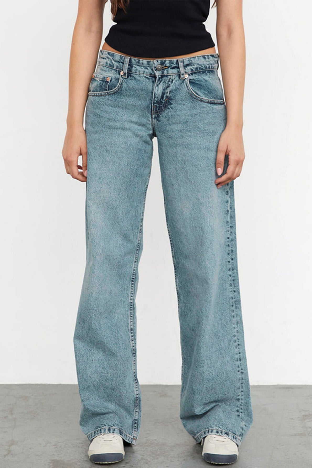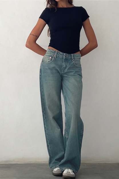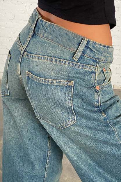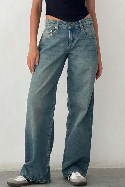 • Clothing Type: Loose Pants • Length: Full Length • Waist Type: Mid Waist • Details: Solid Color, Vintage, Washed • Composition: Denim, Polyester