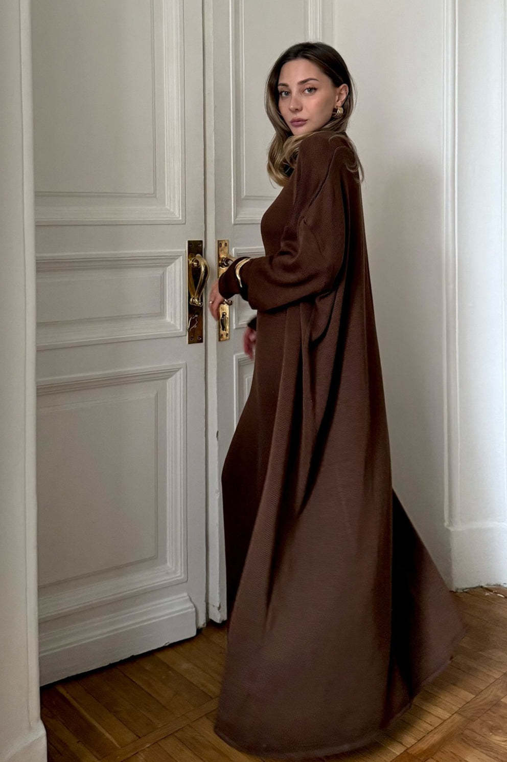 • Dress Length: Maxi • Sleeve Type: Drop Shoulder Sleeve • Sleeve Length: Long Sleeve • Details: Colorful • Composition: Cotton