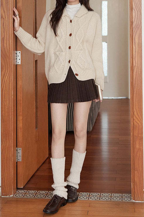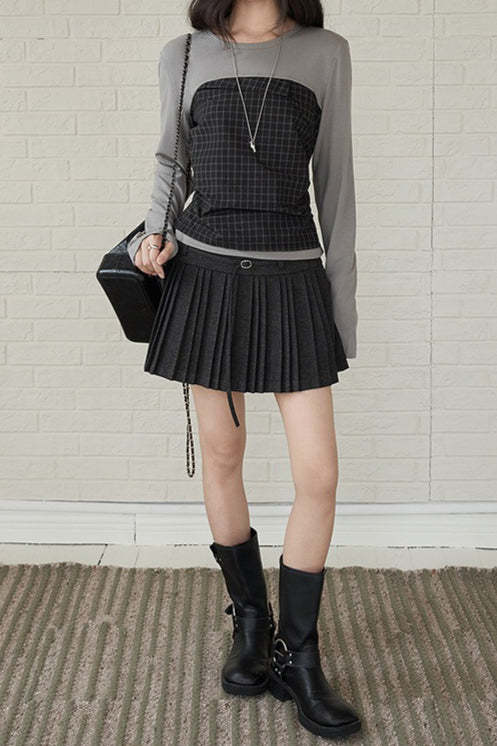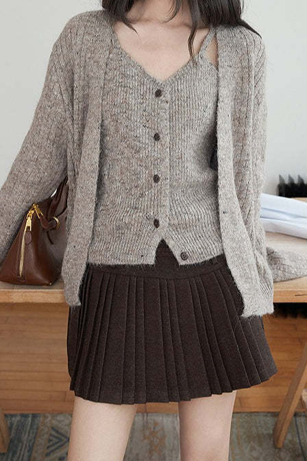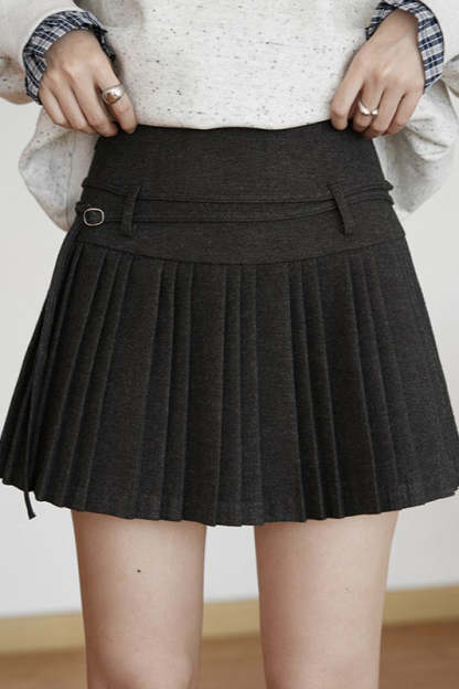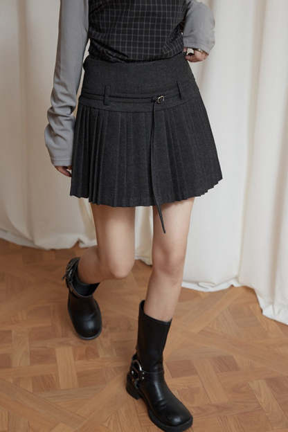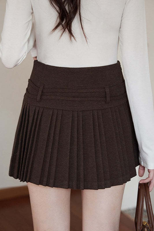 Solid Wool Pleated High Waist Skirt