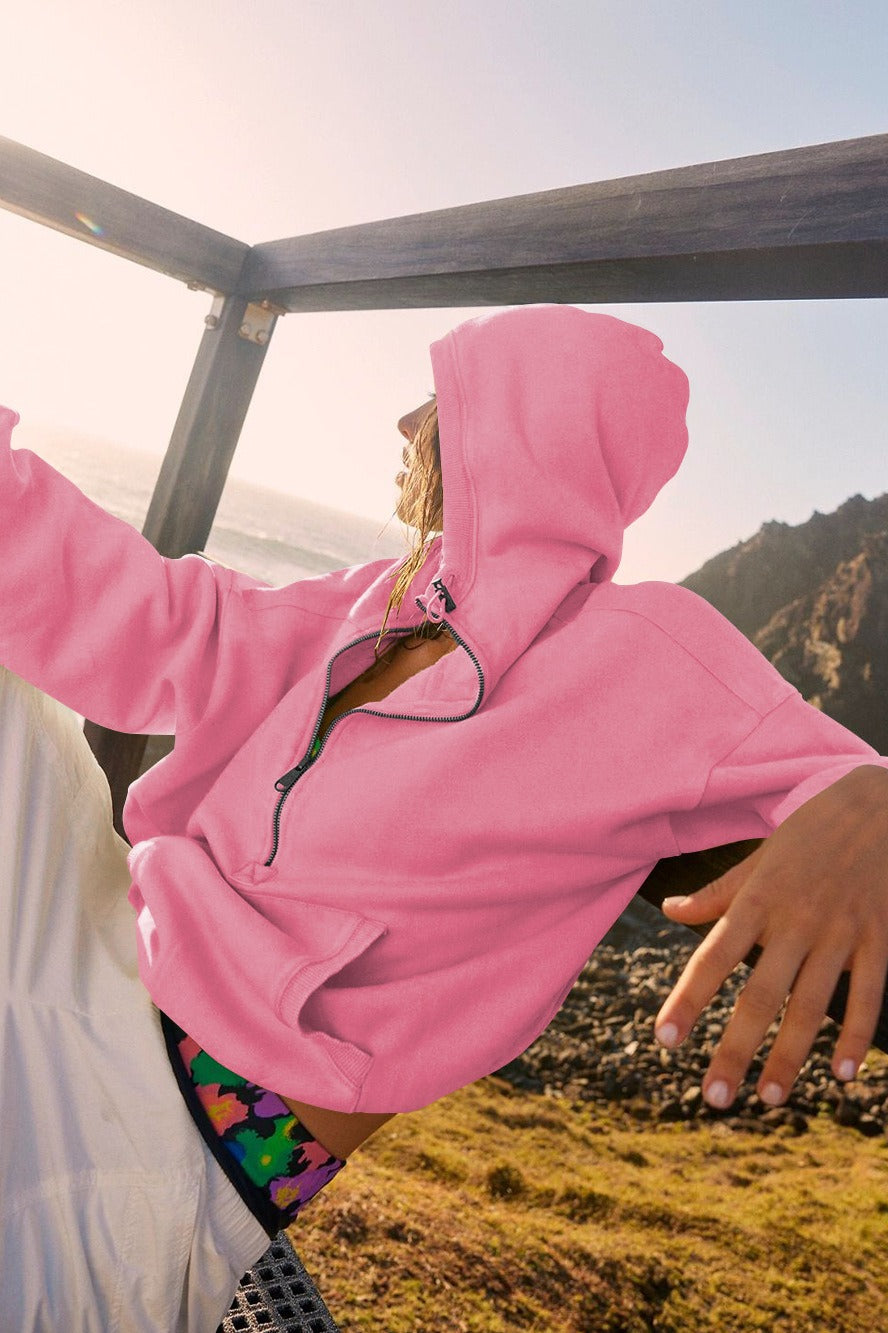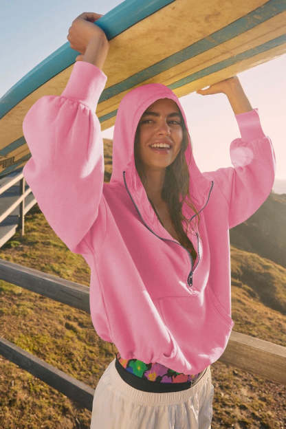 Sporty Drawcord Solid Cropped Sweatshirt