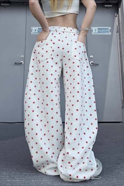 • Clothing Type: Wide Leg Pants • Waist Type: Elastic Waist • Details: Printed • Composition: Cotton, Spandex • Elasticity: Slight Stretch