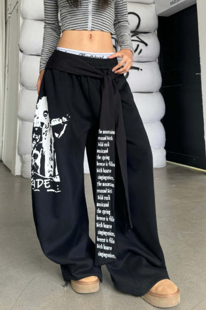 • Clothing Type: Curved Pants • Waist Type: High Waist • Details: Pattern • Composition: Cotton, Polyester • Elasticity: Non-Stretch
