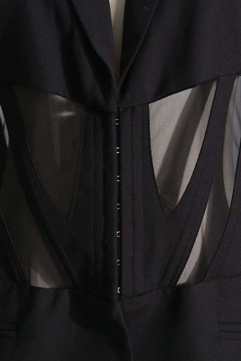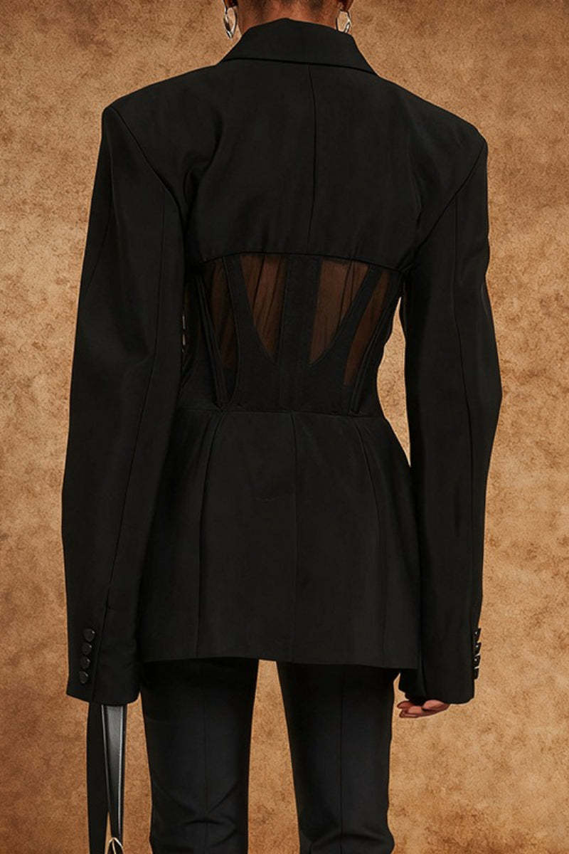 • Fit: Fitted • Neckline: Lapel Collar • Sleeve Length: Long Sleeve • Sleeve Type: Regular sleeve • Details: Sheer • Composition: Polyester, Cotton