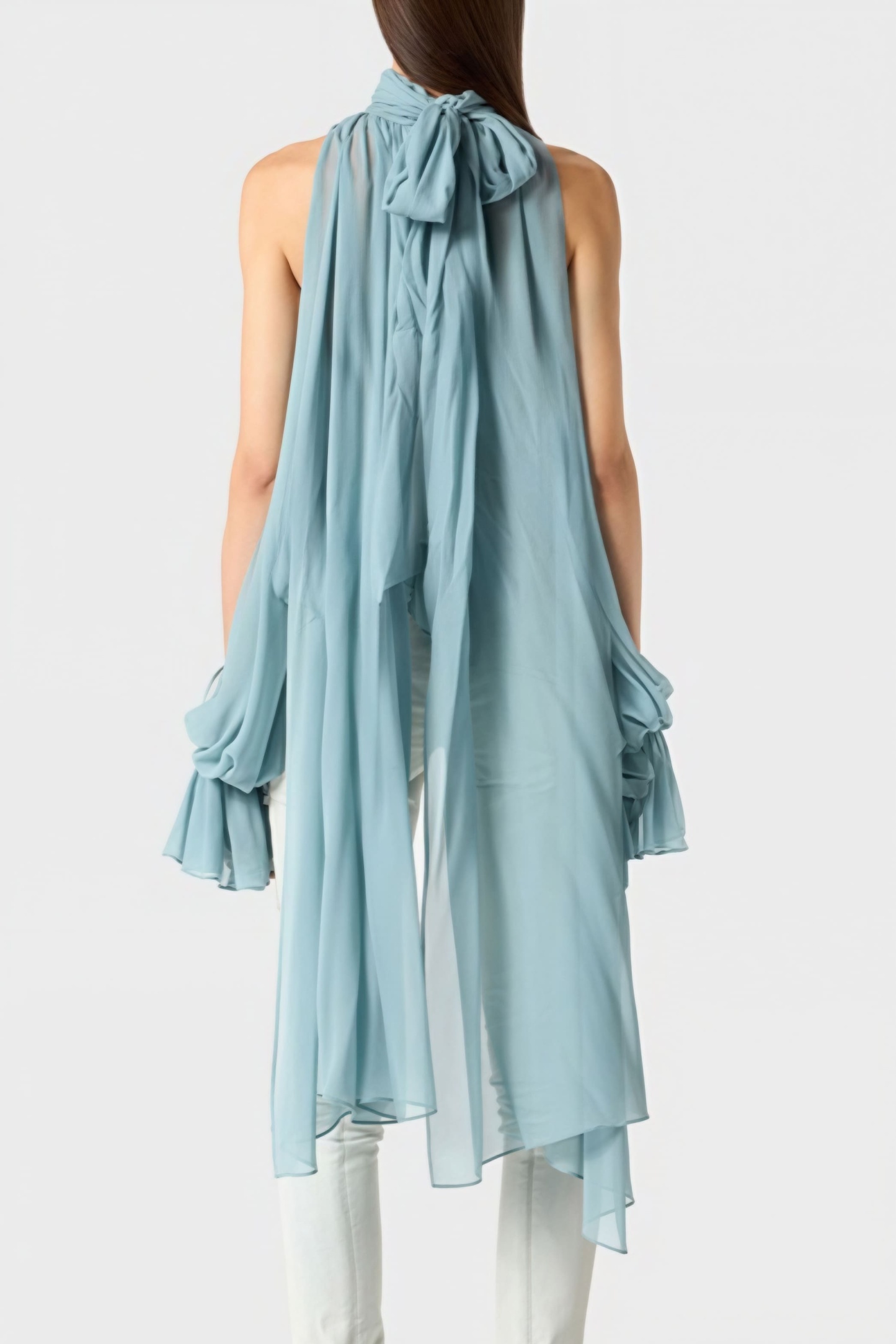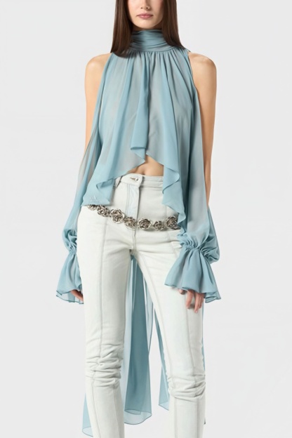 • Fit: Asymmetrical Fit • Neckline: Stand Collar • Sleeve Type: Lantern sleeve; puff sleeve • Sleeve Length: Extra Long Sleeve • Composition: Polyester, Cotton