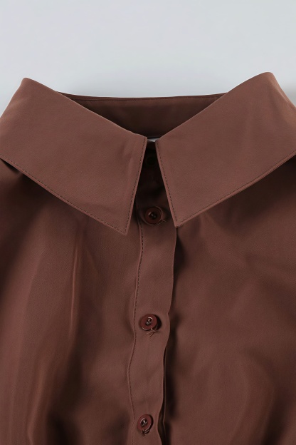• Fit: Slim Fit • Neckline: Lapel Collar • Sleeve Type: Regular Sleeve • Sleeve Length: Short Sleeve • Details: Solid Color • Composition: Polyester