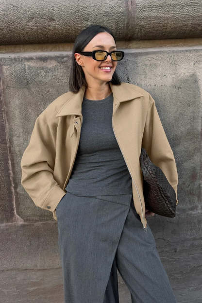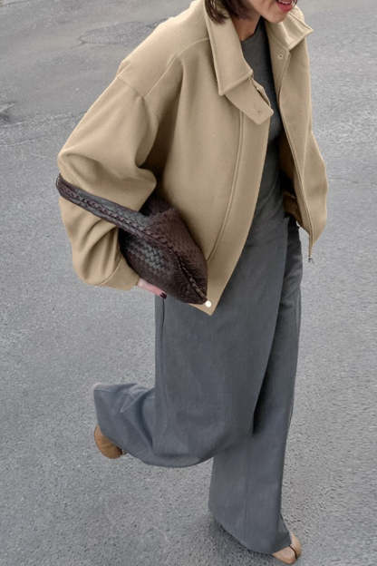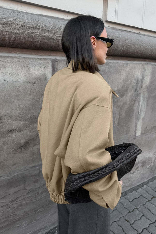 • Fit: Loose Fit • Length: Mid-Length • Neckline: Lapel Collar • Sleeve Type: Drop Shoulder Sleeve • Sleeve Length: Long Sleeve • Details: Buttons • Composition: Viscose, Polyester