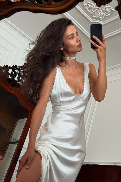 • Clothing Type: Bodycon Dress • Dress Length: Maxi • Waist Type: Mid Waist • Neckline: V-Neck • Details: Lace • Composition: Polyester, Spandex