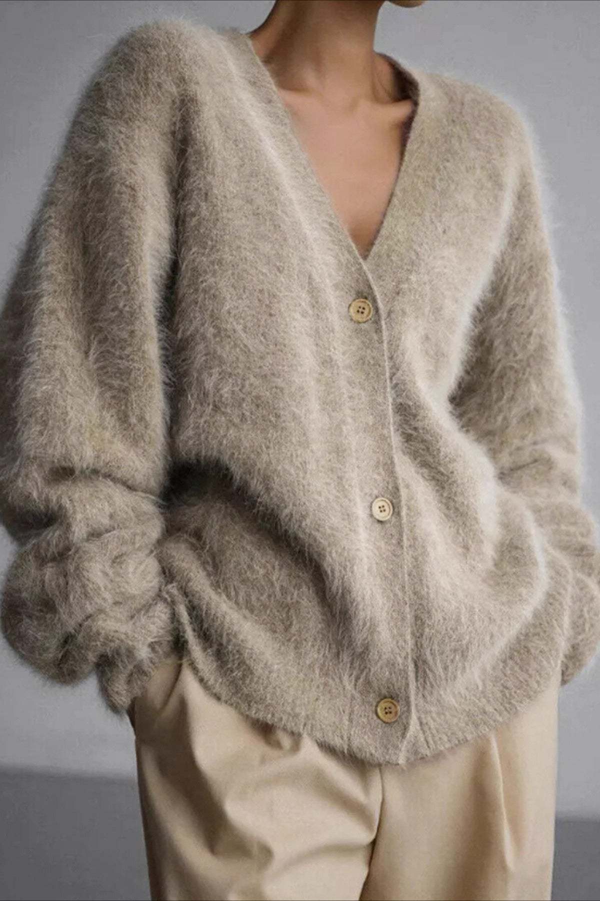 V Neck Button Long Sleeve Cardigan