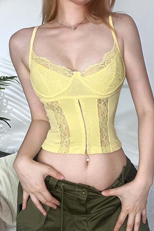 V Neck Lace Trim Slim Cami Top