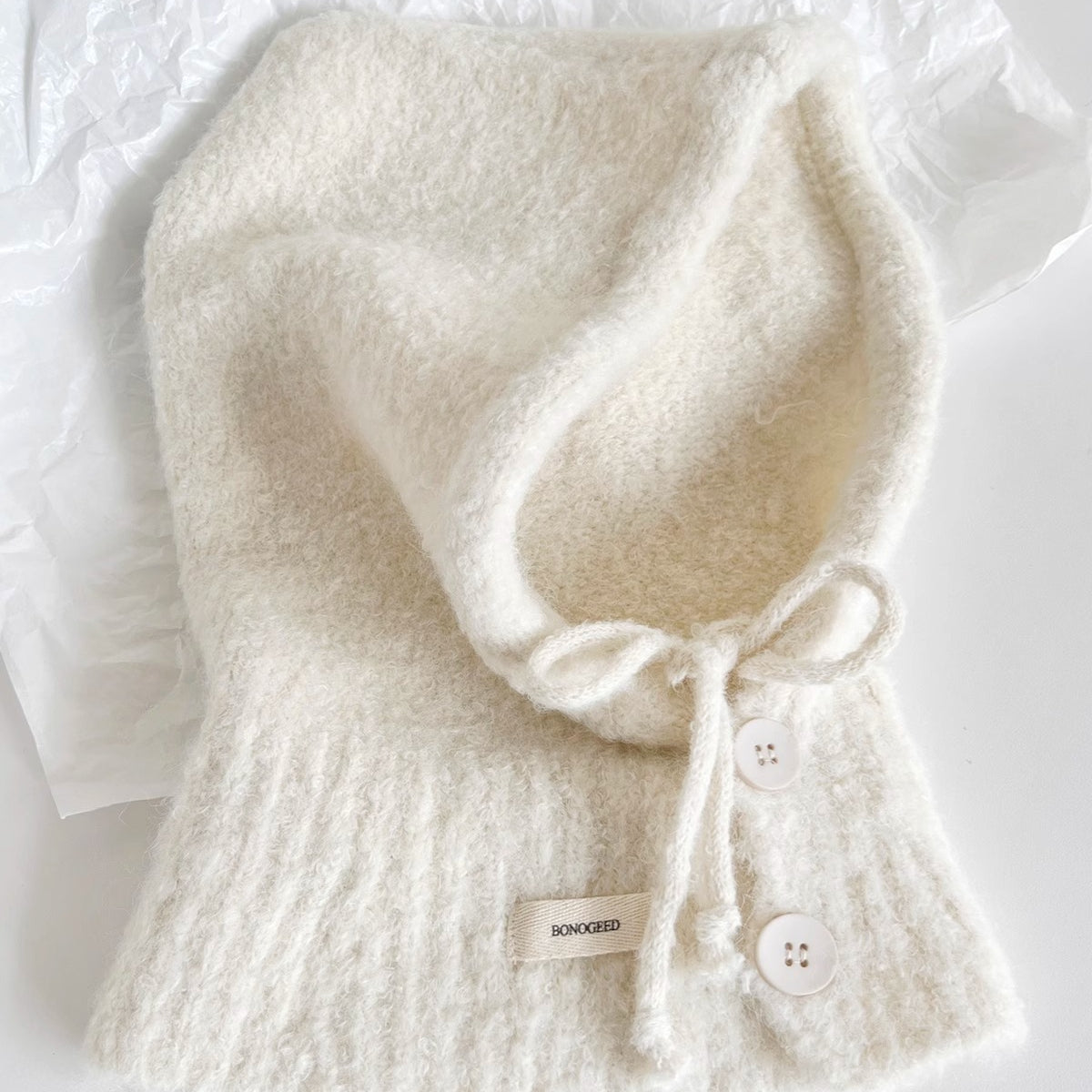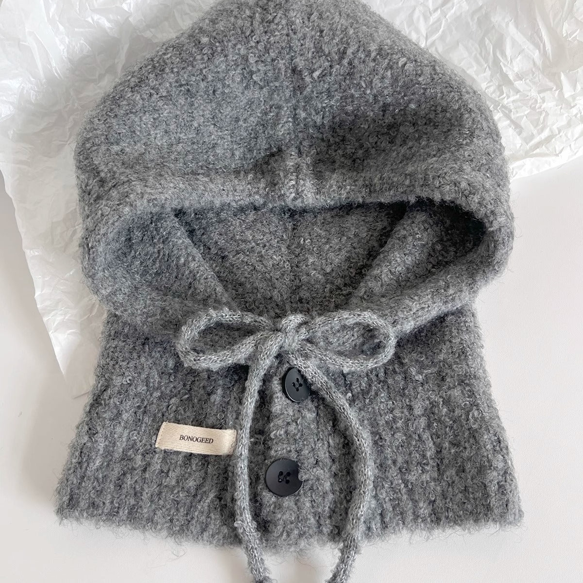 • Composition: Wool (10% or less) • Craftsmanship: Warp Knitting • Style: Cute, Sweet • Function: Warmth • Crown Style: Round Crown • Brim Style: Brimless