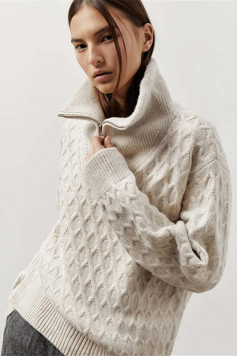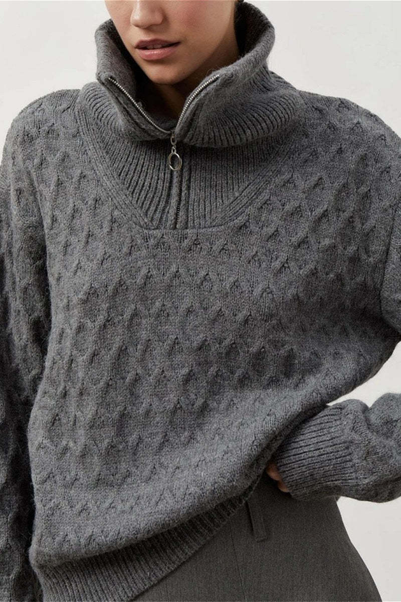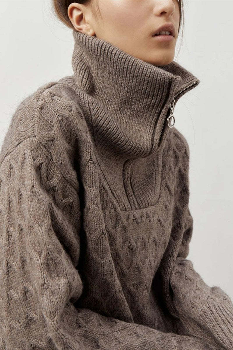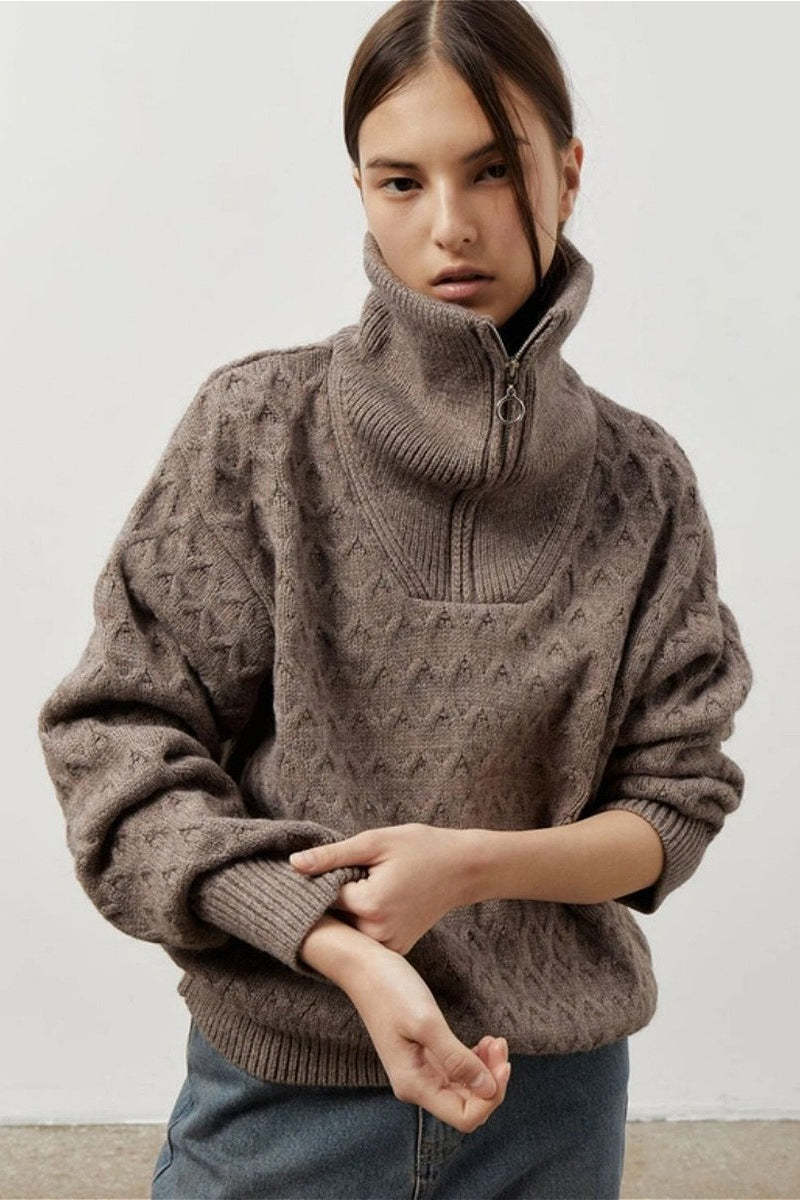 • Fit: Loose Fit • Neckline: Turtleneck Collar • Sleeve Type: Regular Sleeve • Details: Crochet • Composition: Polyester, Acrylic