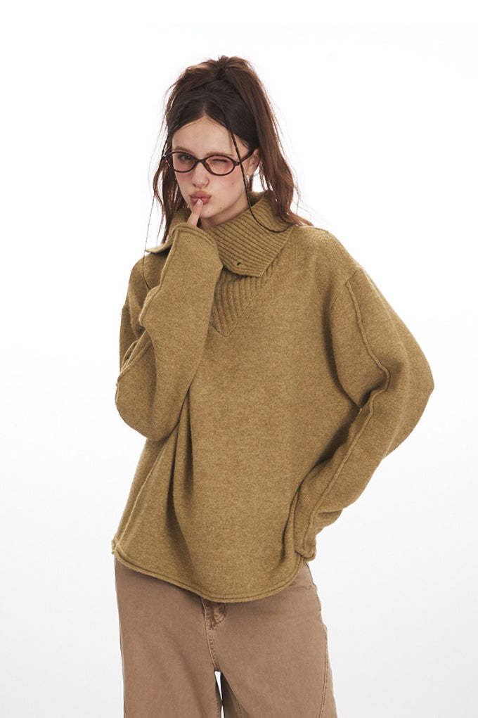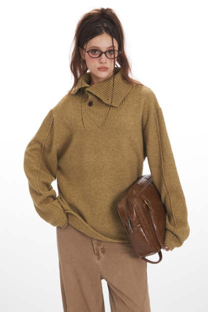 • Fit: Loose Fit • Neckline: Turtleneck Collar • Sleeve Type: Regular Sleeve • Details: Buttons • Composition: Recycled Cellulose Fiber, Acrylic