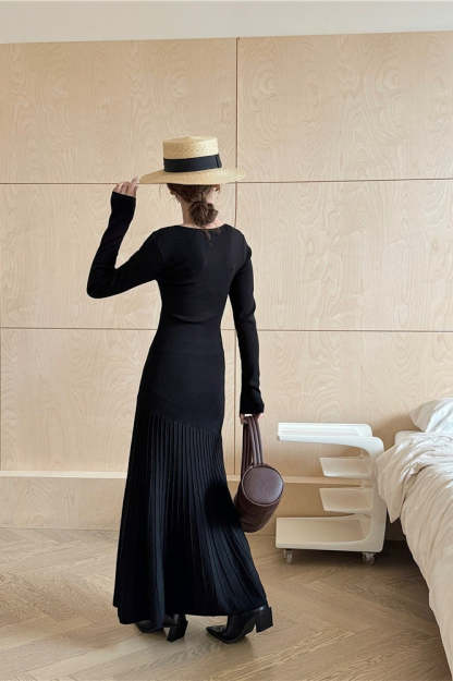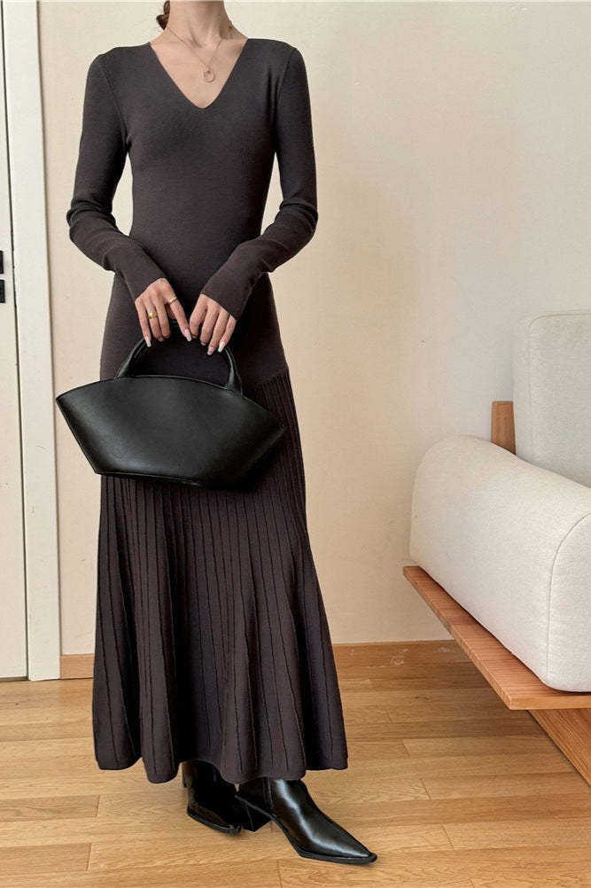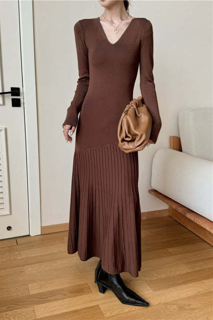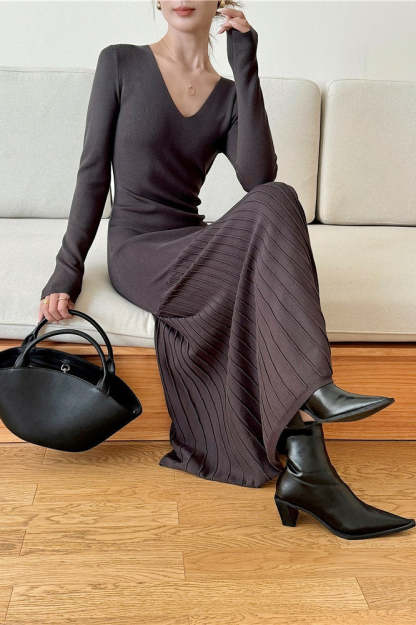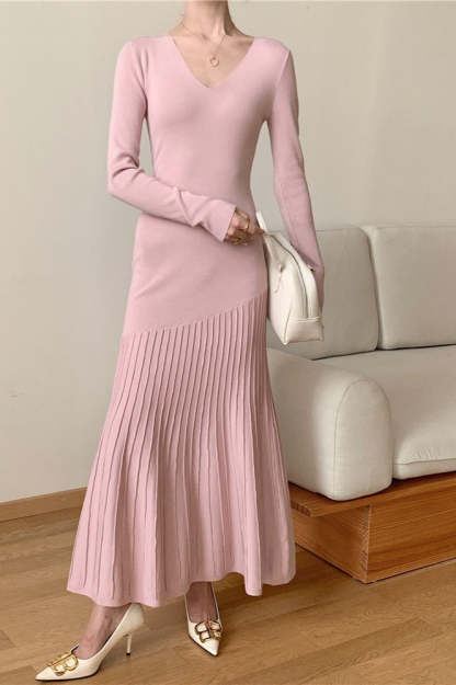 • Clothing Type: Mermaid Dress • Dress Length: Maxi • Waist Type: Loose Waist • Neckline: V-Neck • Sleeve Type: Regular sleeve • Sleeve Length: Long Sleeve • Details: Solid Color • Composition: Polyester, Nylon