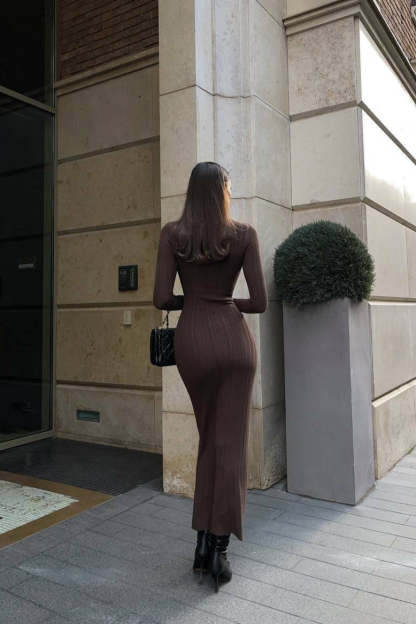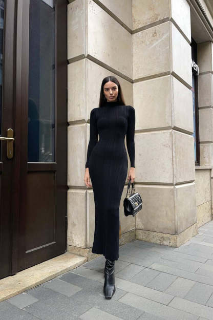 • Clothing Type: Bodycon Dress • Dress Length: Maxi • Waist Type: High Waist • Neckline: Turtleneck Collar • Sleeve Type: Regular sleeve • Sleeve Length: Long Sleeve • Details: Solid Color • Composition: Mercerized Cotton