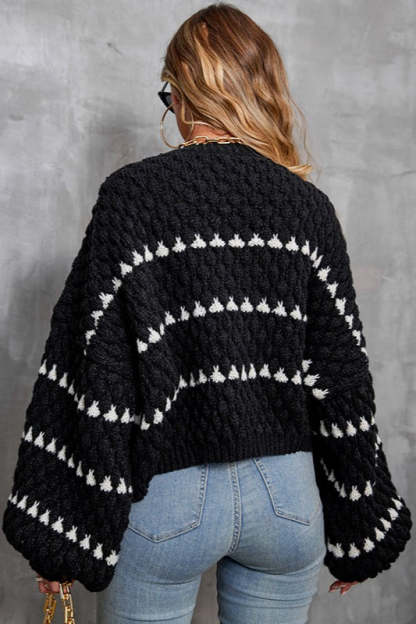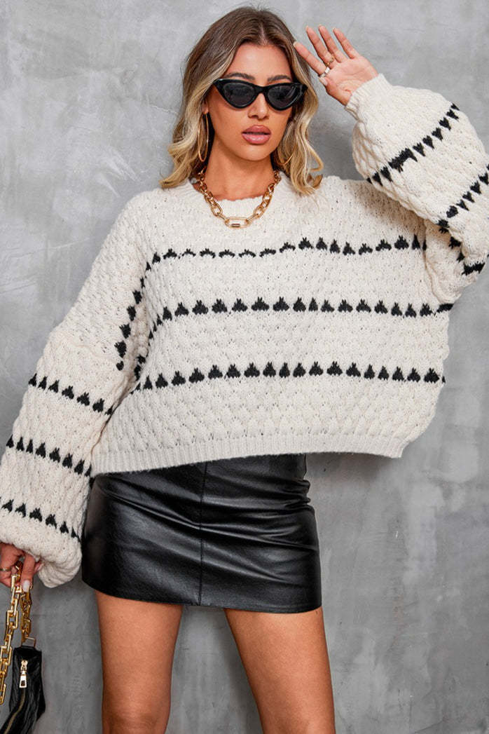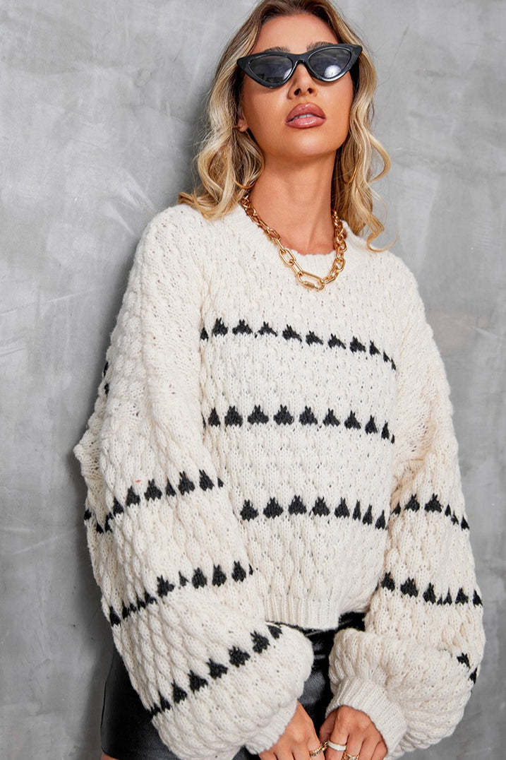 • Fit: Loose • Neckline: Round Neck • Sleeve Type: Lantern sleeve • Sleeve Length: Long Sleeve • Thickness: Thick • Composition: Polyester • Details: Colorblock