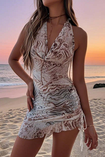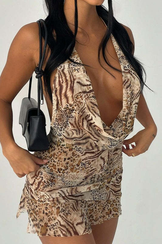 Vintage V-Neck Halter Mini Dress