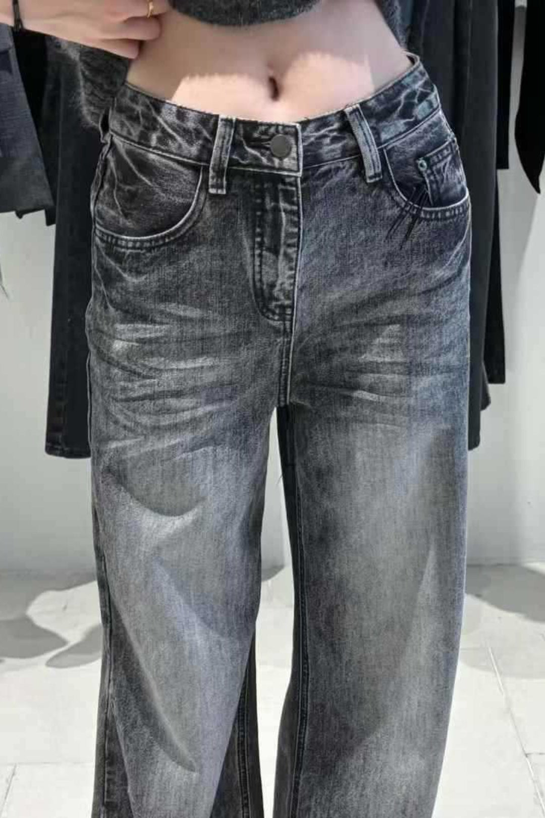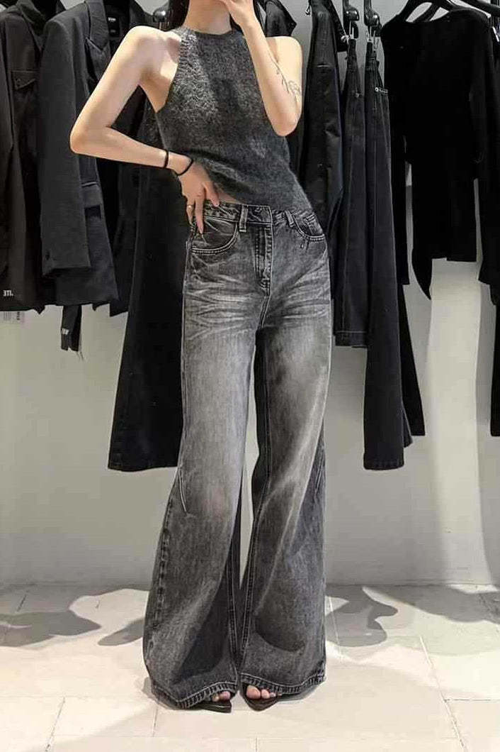 • Clothing Type: Wide Leg Pants • Length: Full Length • Waist Type: Mid Waist • Details: Washed, Patchwork • Composition: Cotton