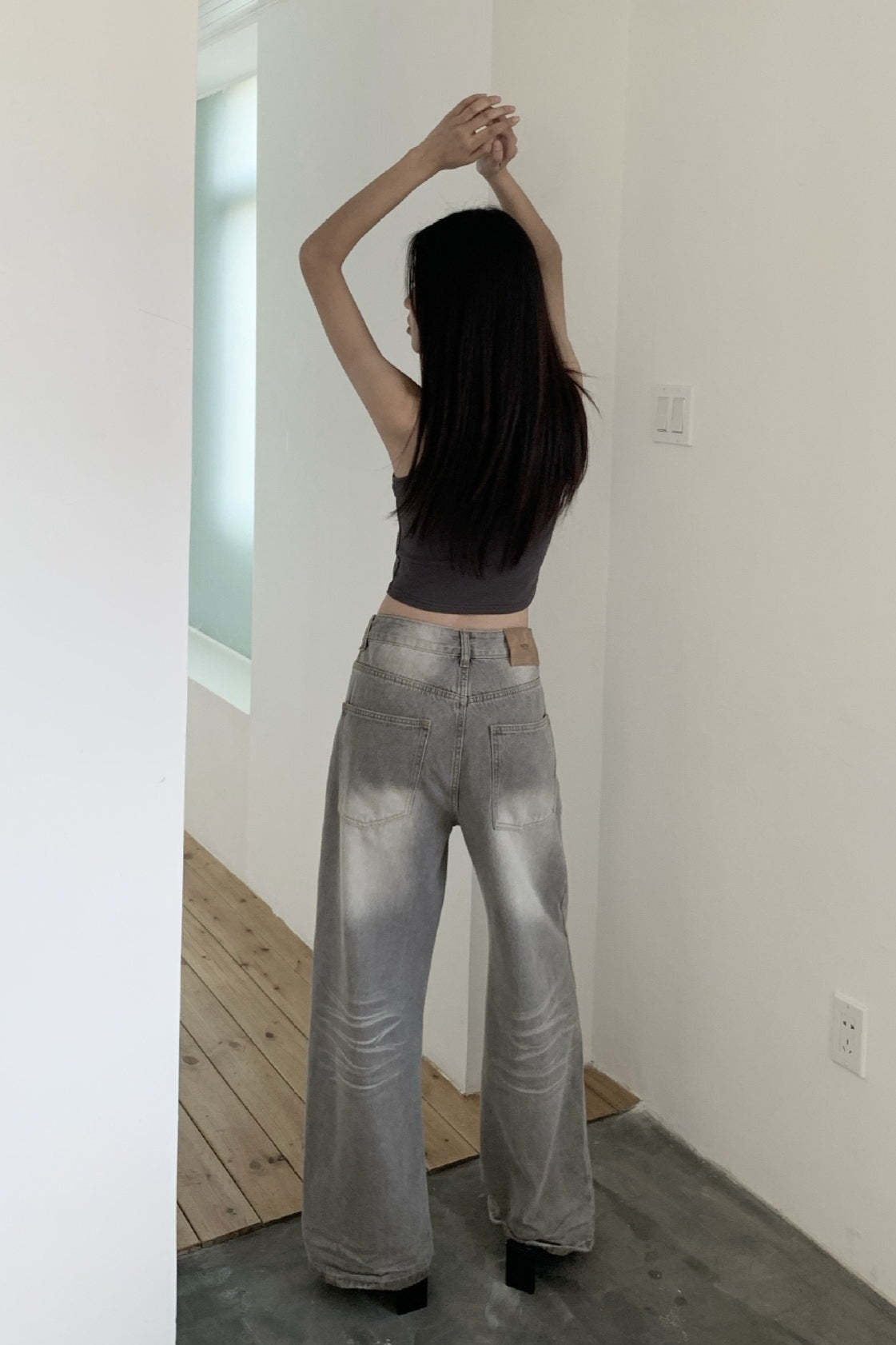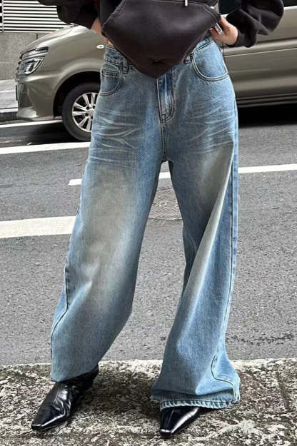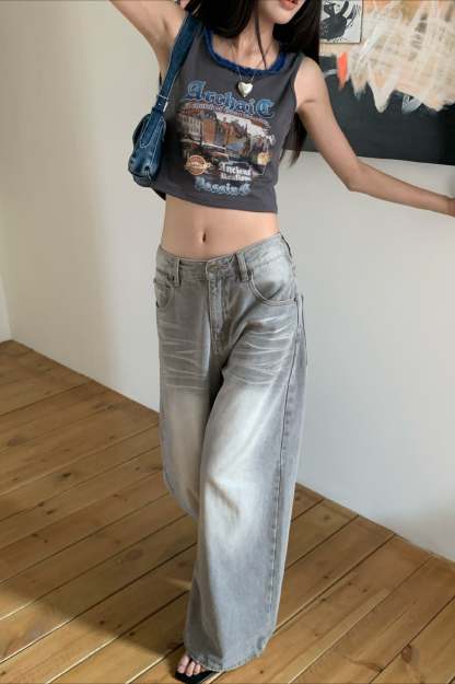 • Clothing Type: Straight Pants • Waist Type: Low Waist • Details: Washed • Composition: Cotton, Polyester