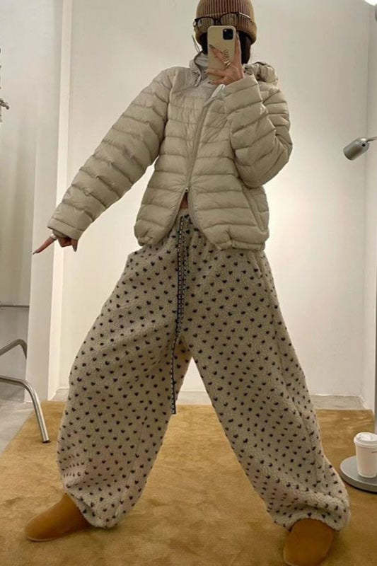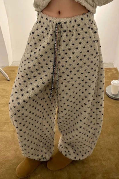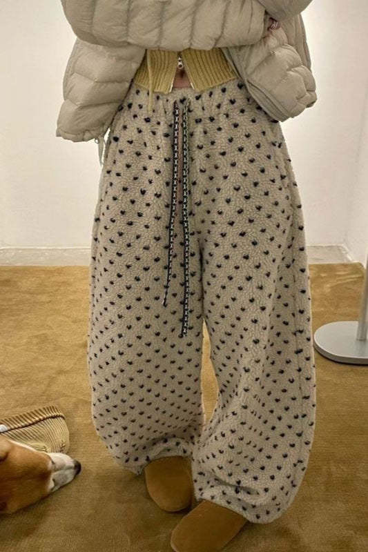 Warm Thickened Polka Dot Fleece Drawcord Pants