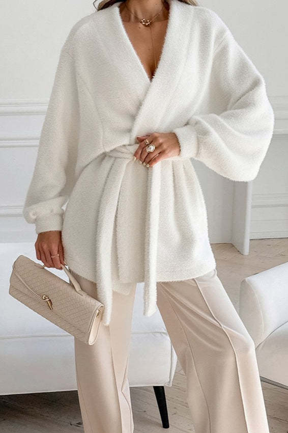 • Fit: Loose Fit • Neckline: V-Neck • Sleeve Type: Regular Sleeve • Sleeve Length: Long Sleeve • Details: Drawstring • Composition: Polyester